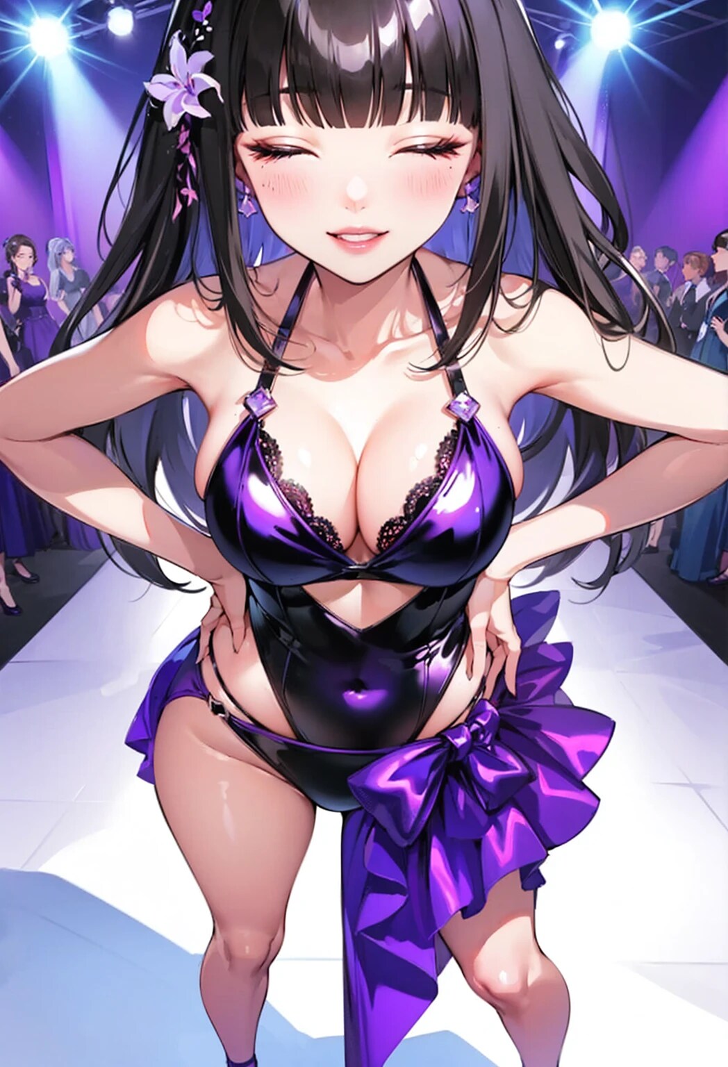 ①アメジスト調ハイレグワンピースにショルダーフリルガード