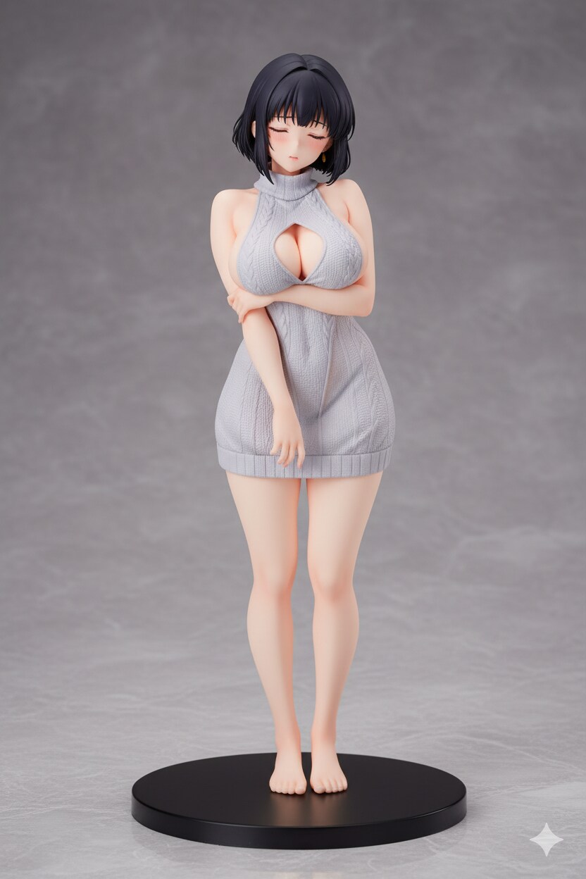 2枚目は、「これからハイレグになり”ハイレグ女戦闘員化”しますが、はしたない女の子と思わないでくださいまし・・💦」ってセリフの後、女戦闘員化する”童貞を〇すハイレグセーター型女戦闘員”のフィギュア化です。