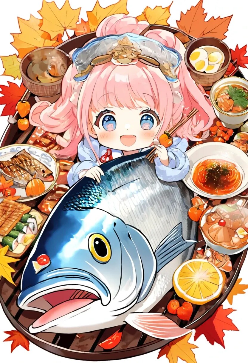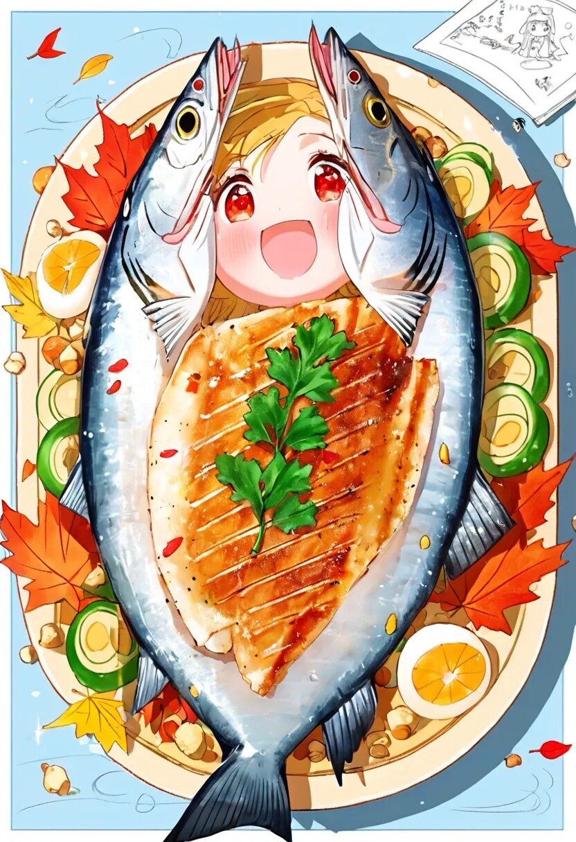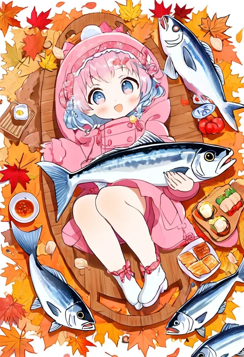 青魚はよく出るが、秋刀魚がほとんど出ずにギャグ系イラストになった