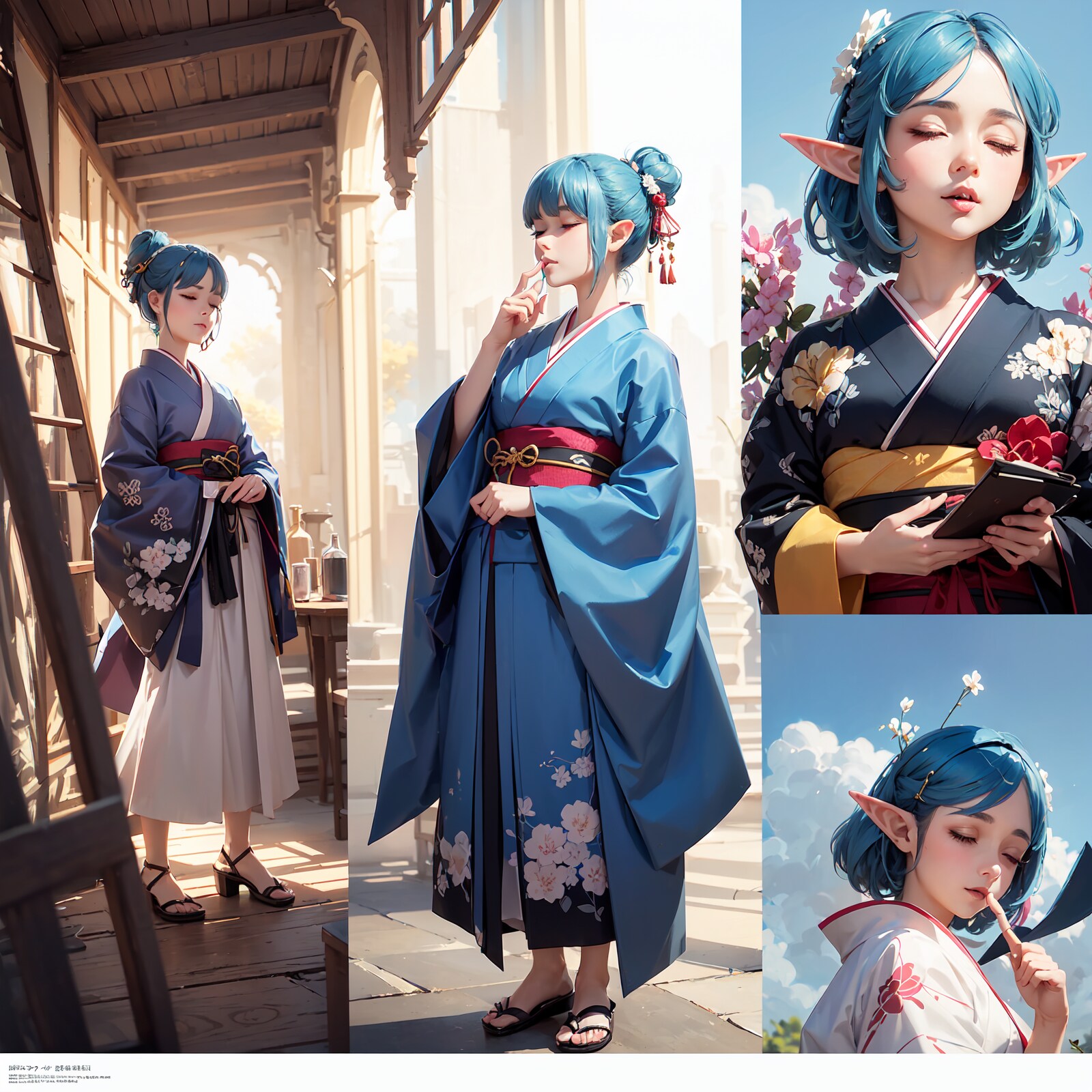アネ・Ane(青髪のエルフ。おっとりした性格だが魔法は特級クラス、貞操観念はゆるめでその事で妹に心配をかけている)