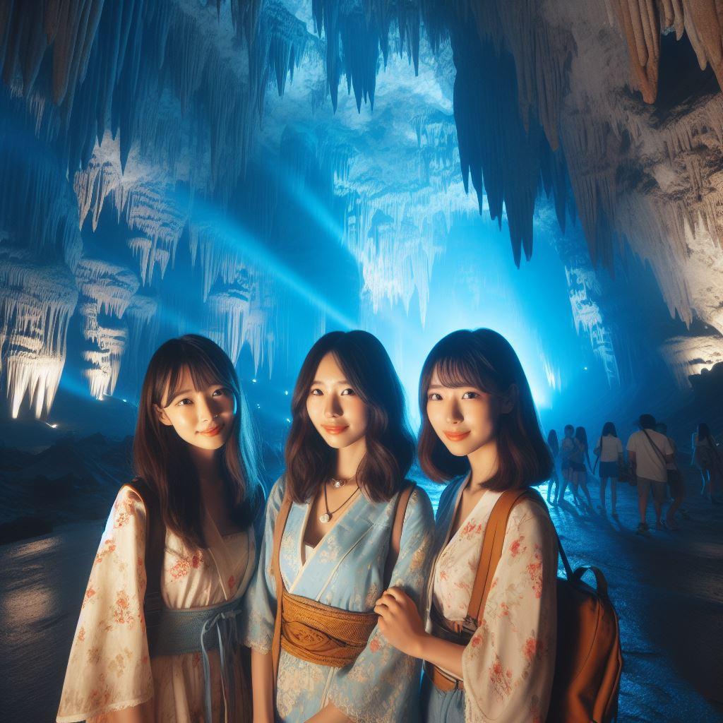 鍾乳洞 - 盧笛岩(ろてきがん)の派手なライトアップ