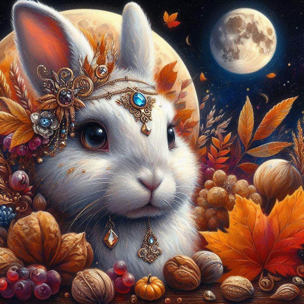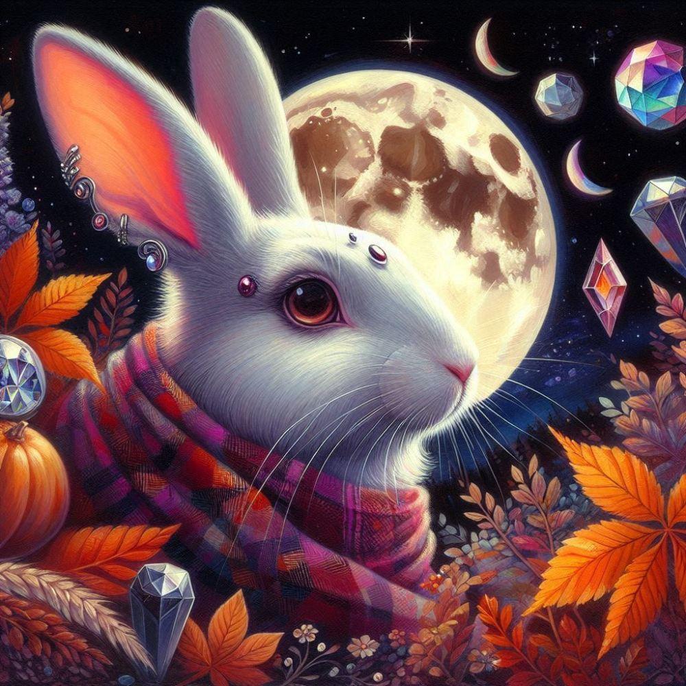 アクリルファンタジー、宝石ピアスをしたウサギ