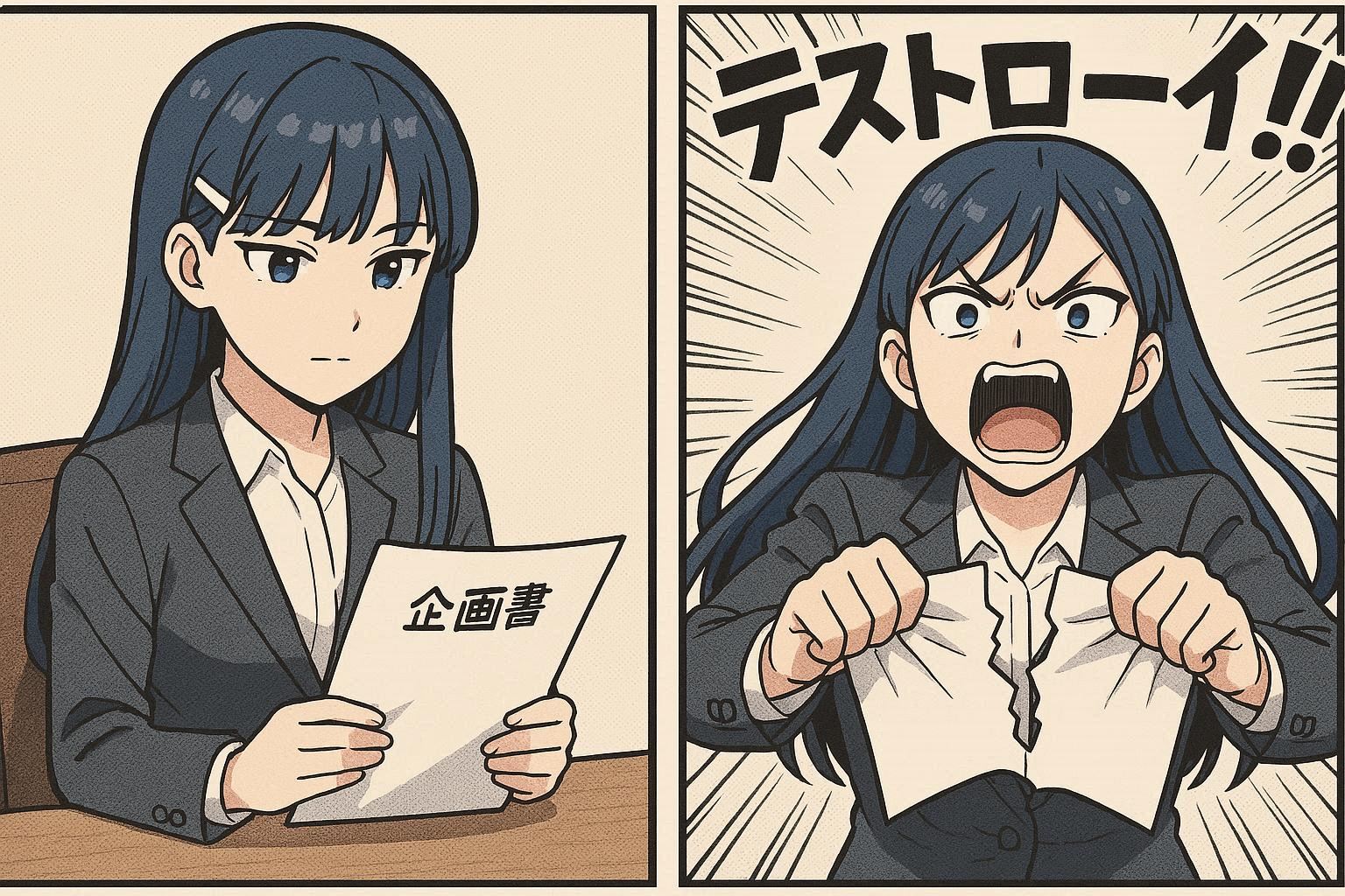 元ネタは2CH時代のAA.デストロイ様。マンガ編集者が持ち込みマンガを読んで破り捨てるシーン