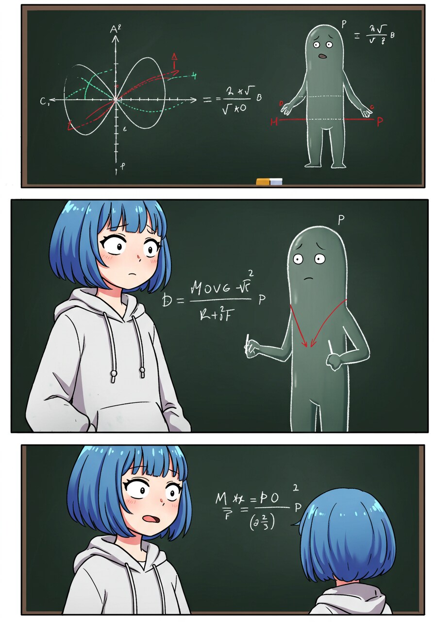 どうてんピーくんが“観測されて動けなくなった瞬間”を、やわらかく哲学的に切り取っています。
