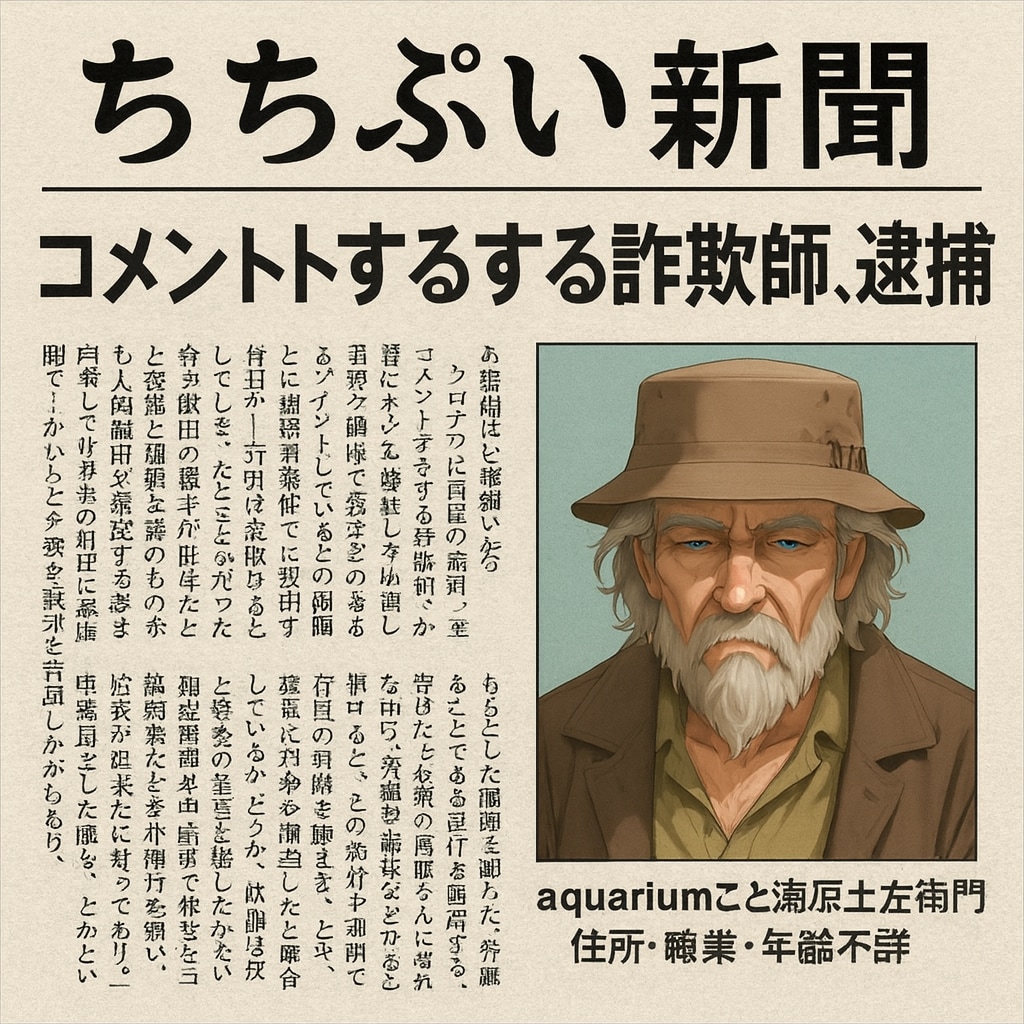 「気軽にコメントします」などと呼びかけながら、実際には一度もコメントを行わなかったとして、府警サイバー対策課は16日、詐欺の疑いで海原土左衛門(職業・年齢不詳、住所不定)を逮捕した。