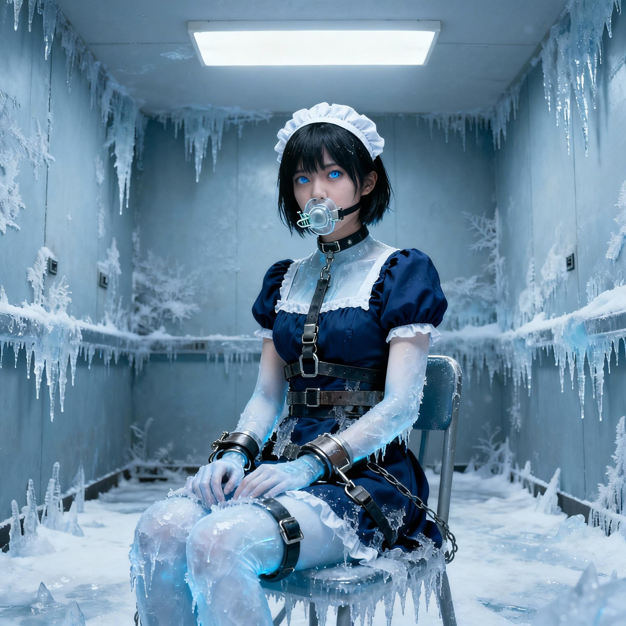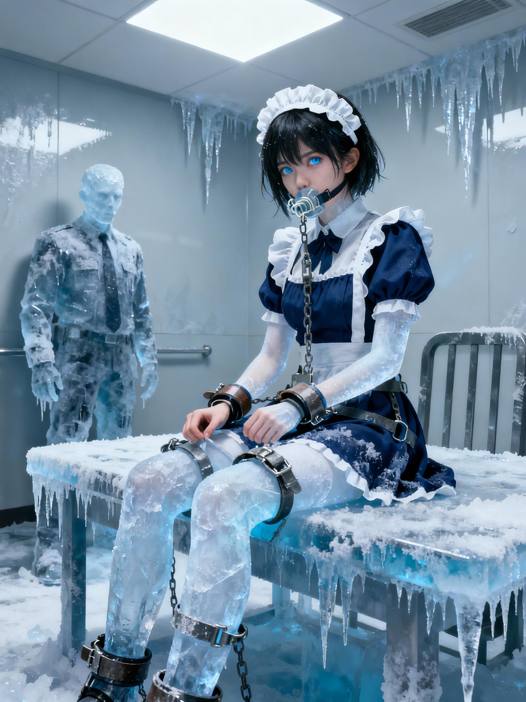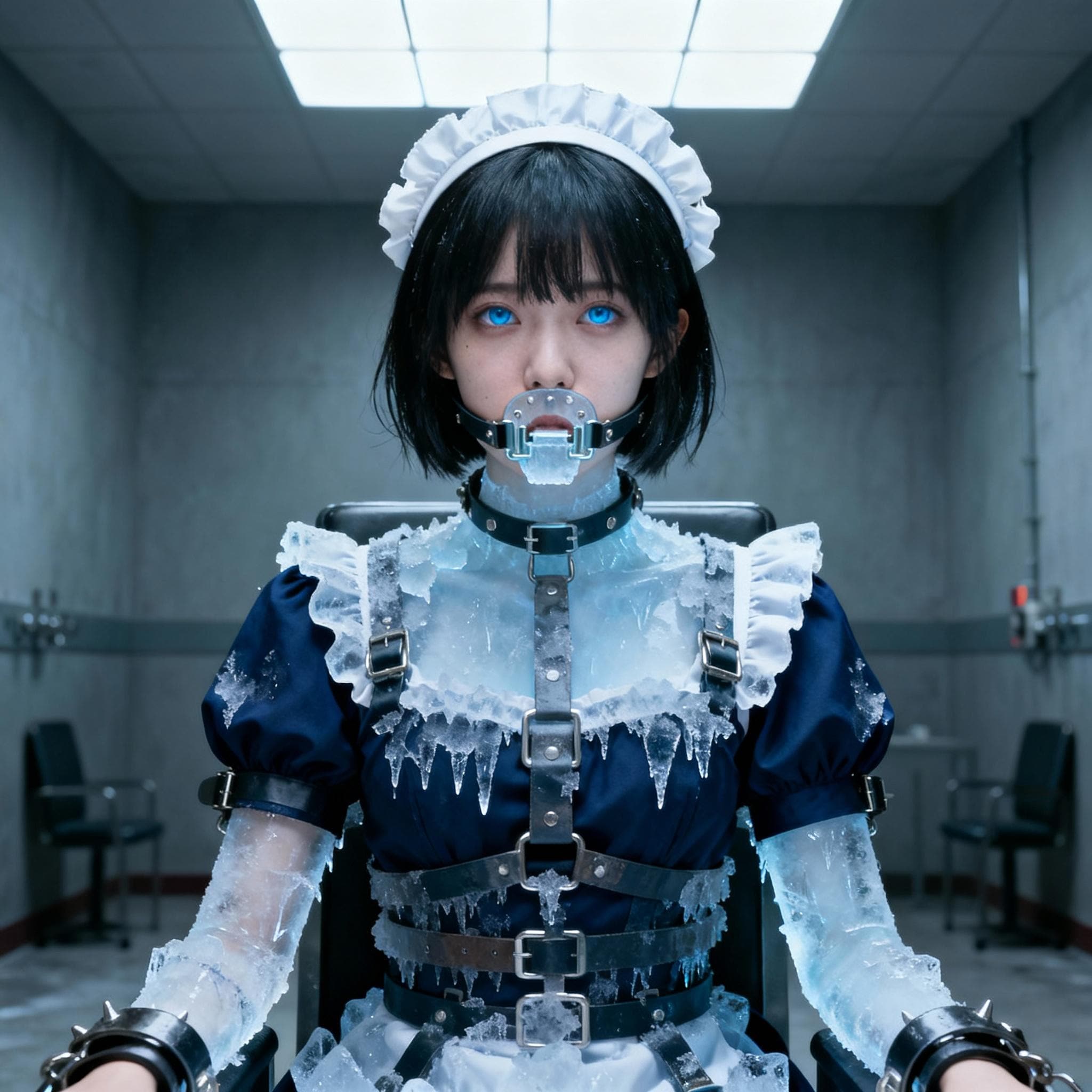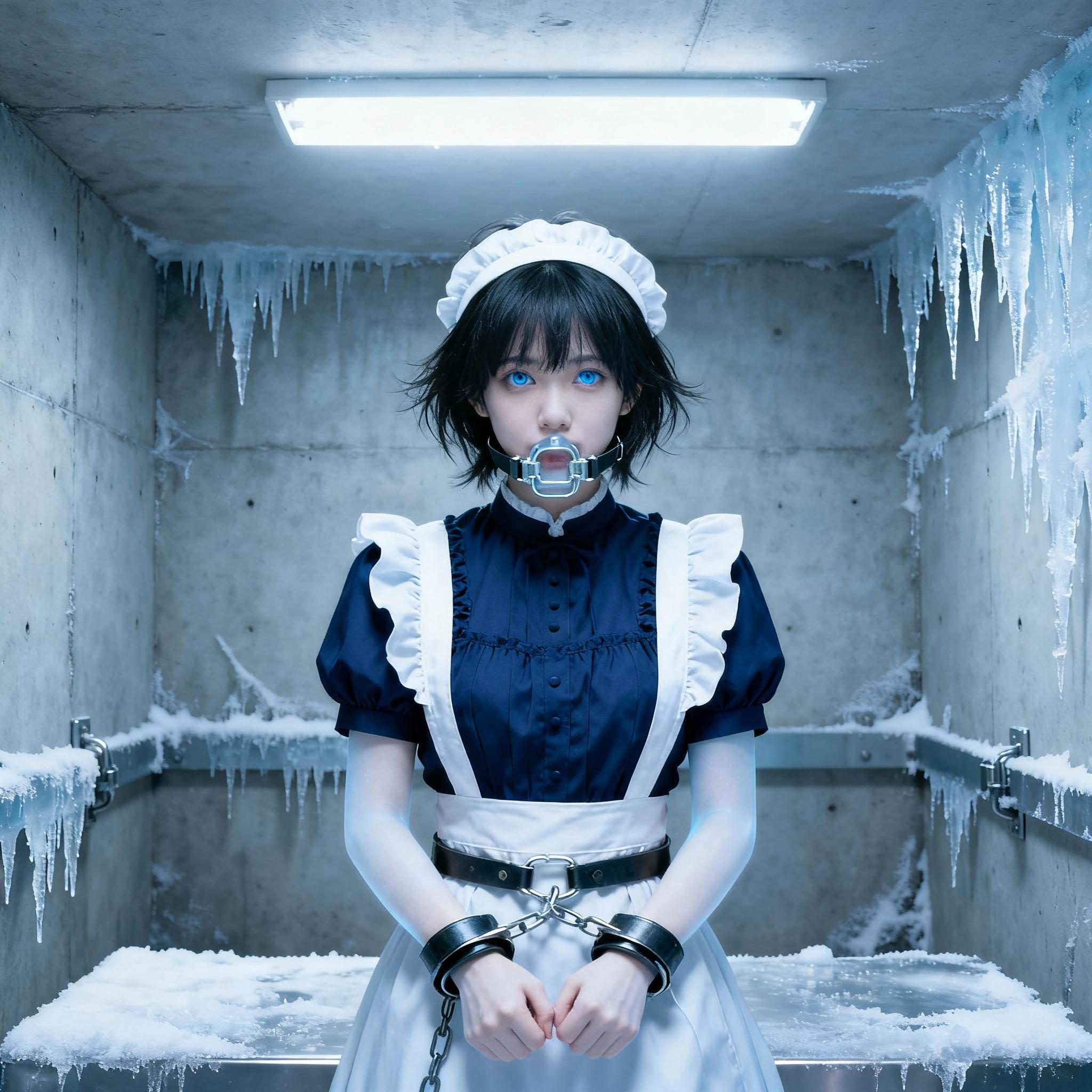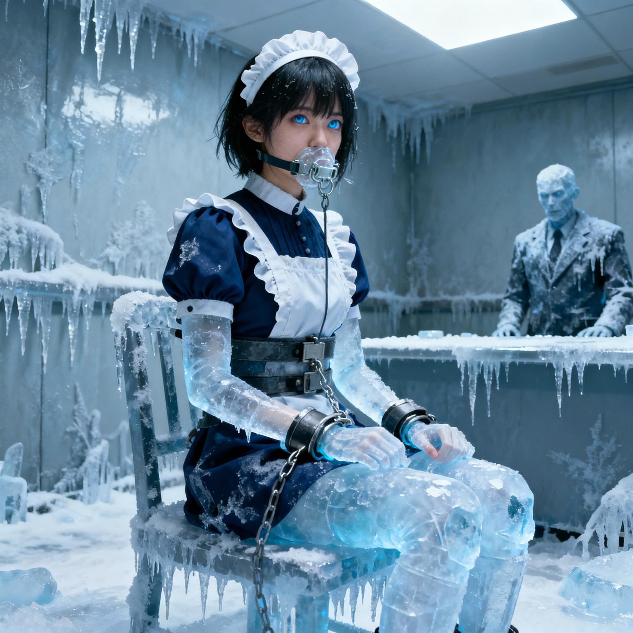 拘束具を外し、氷漬けになった敵に一礼し、取調室を後にするメイド3号であった。