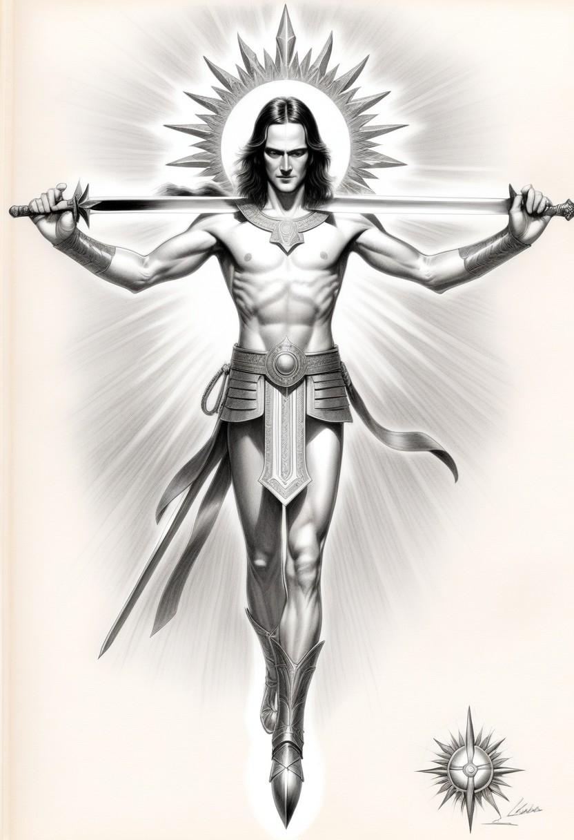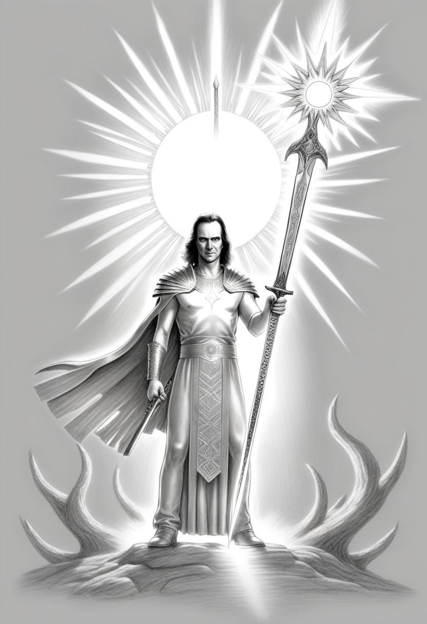 Luura the Shining One, Particle of the Primal Light, is the god of Sun, Light, and Healing. He appears in a humanoid shape appropriate to his followers (he appears as an old high elf to his High Elven worshippers, as a venerable Dwarf to dwarves etc) or as a halo surrounding his most faithful follower. Luura's weapon is the two handed sword.