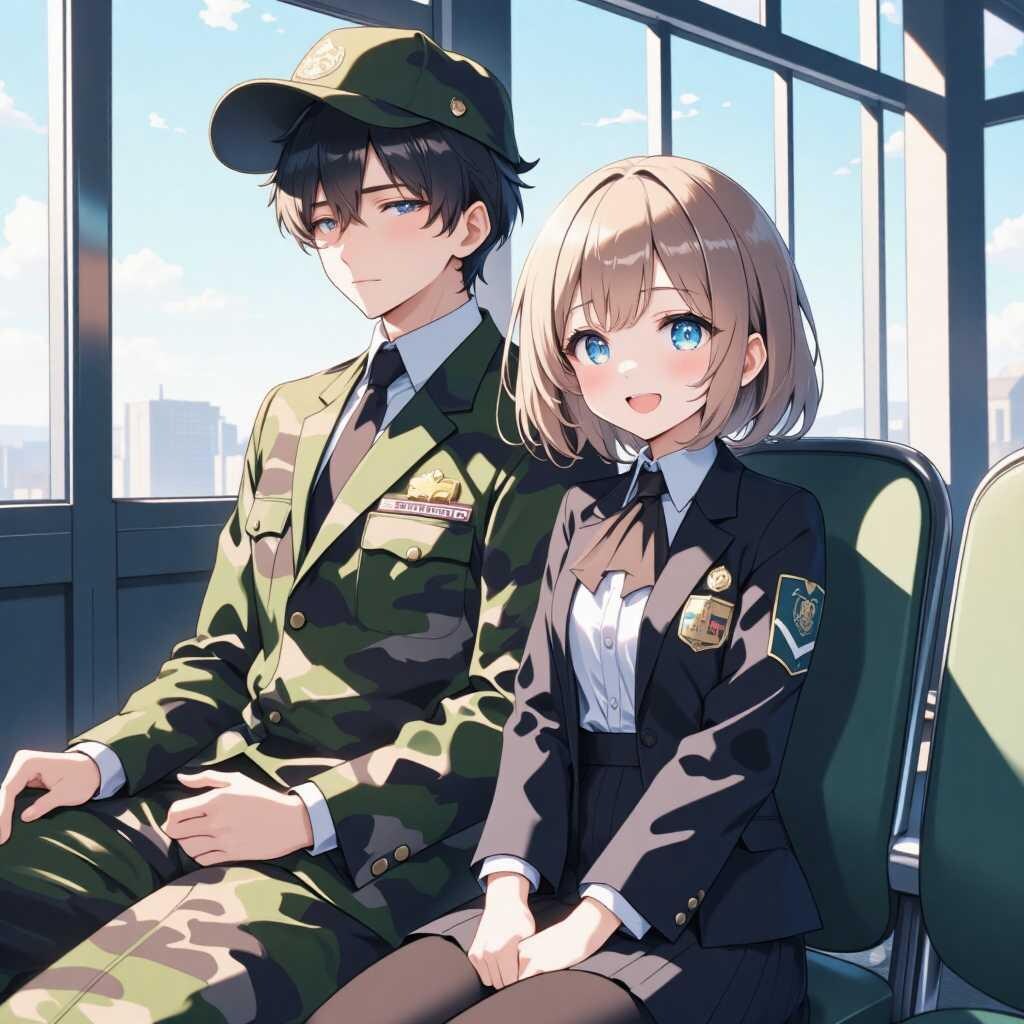 待っている間、隣に座っていたのが全身迷彩服の男性だった。