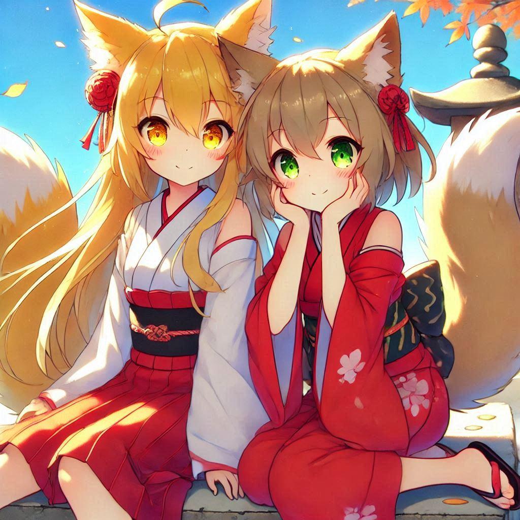 1枚目:AIイラストAnime irasuto pus(i2i表情50%)、紅葉除去、画質調整