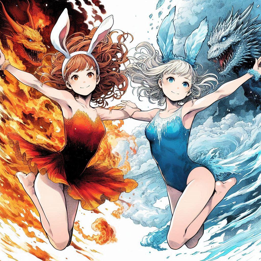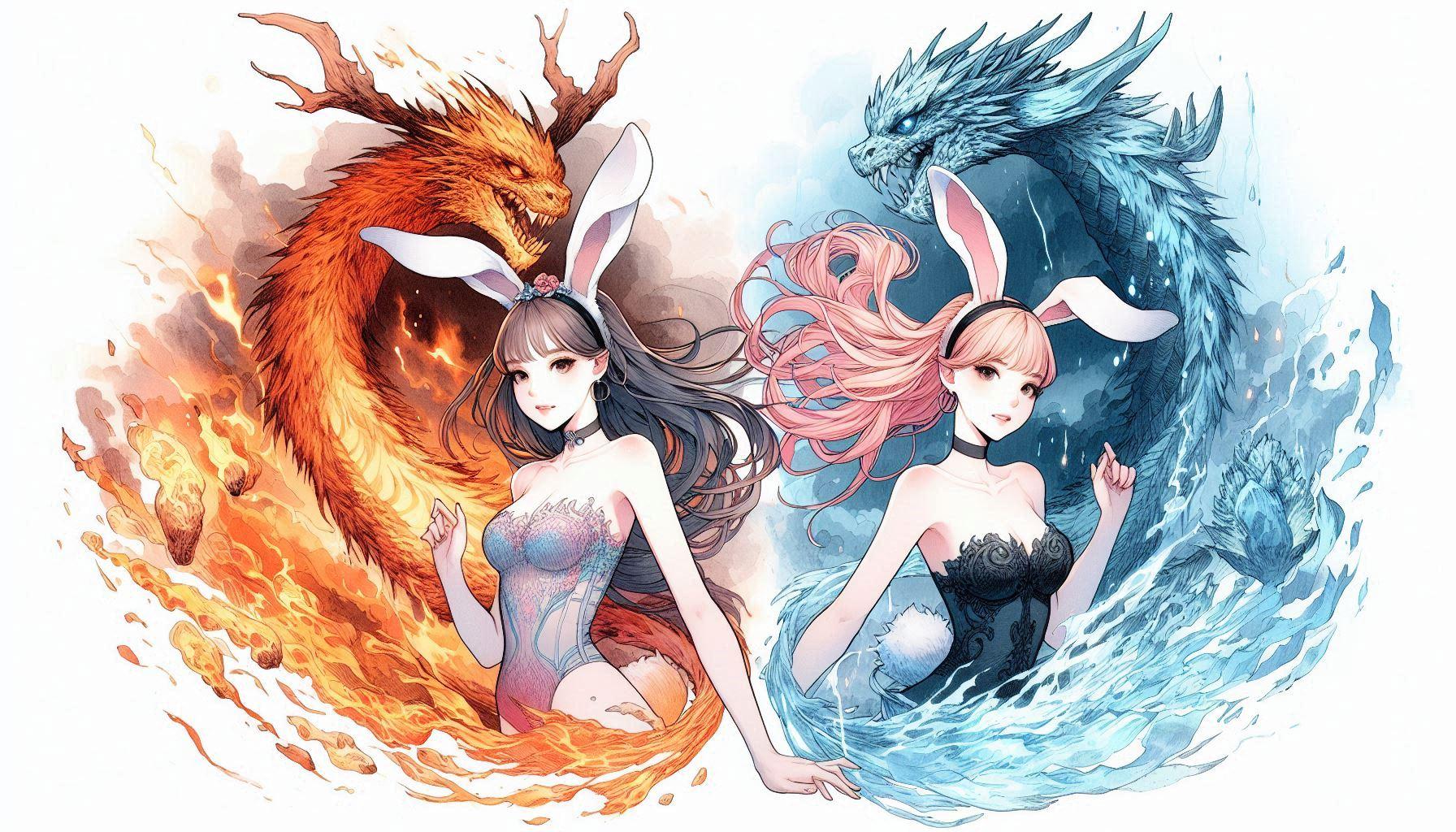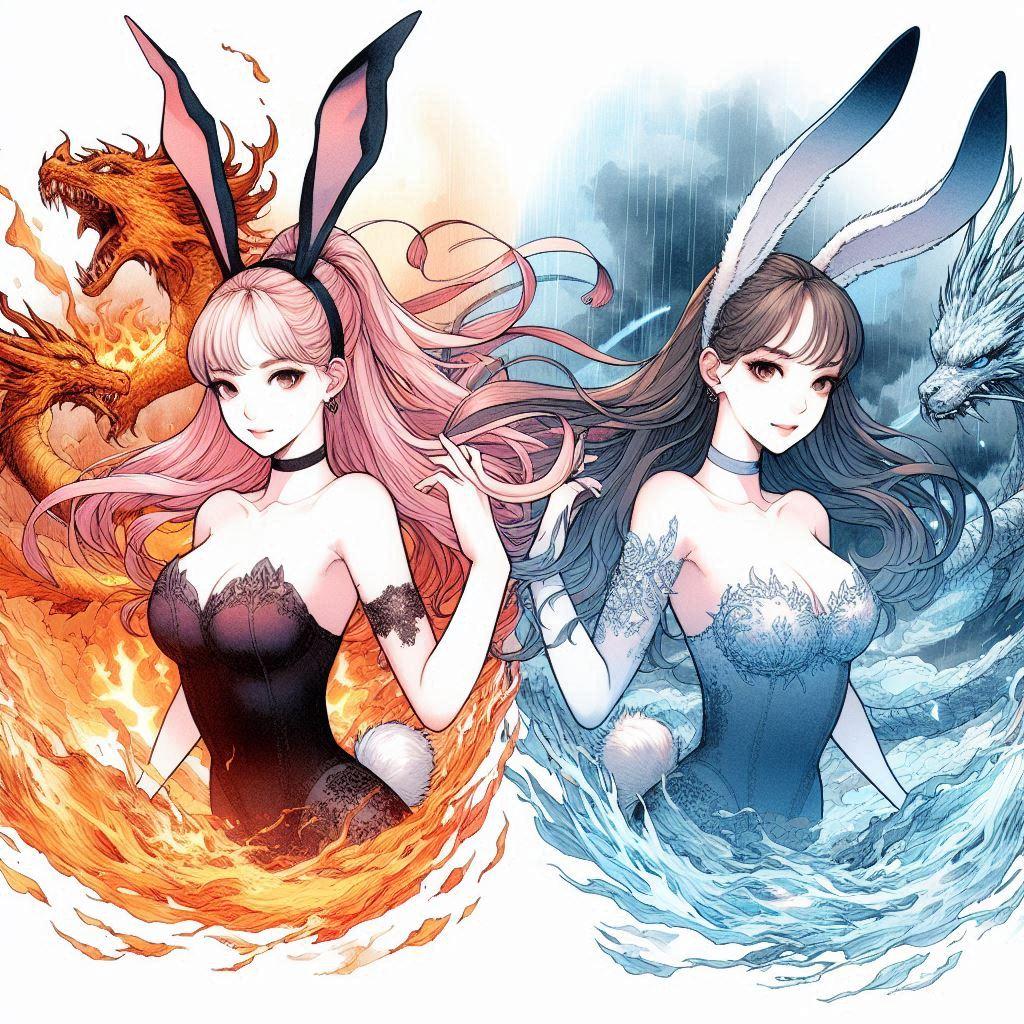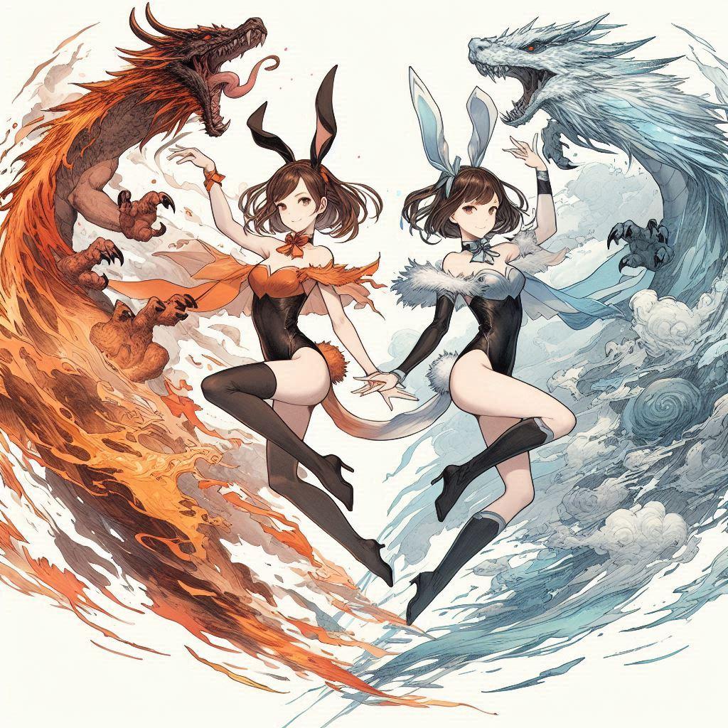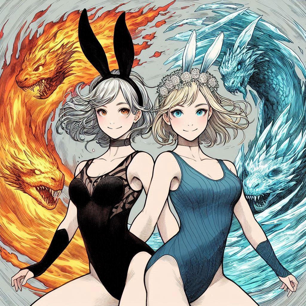 (ミラさん感謝!)ドラゴンオーラを纏った炎のバニーと氷のバニー!