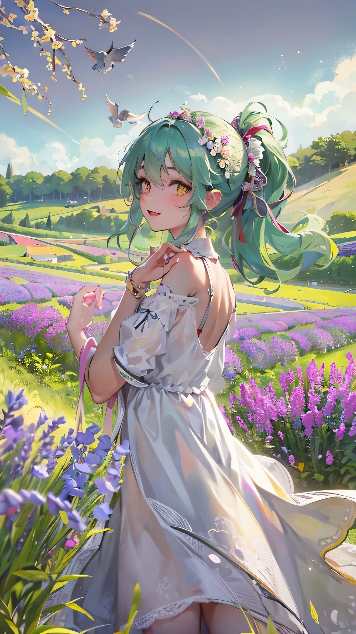パリの西郊外、のどかな平野に咲く季節外れのラベンダーを眺める執事君。