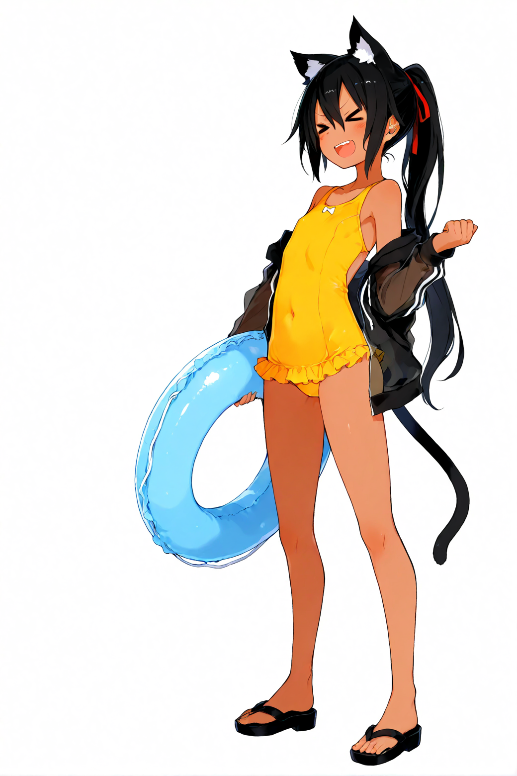 遠くでイチノとクロキが浮き輪を