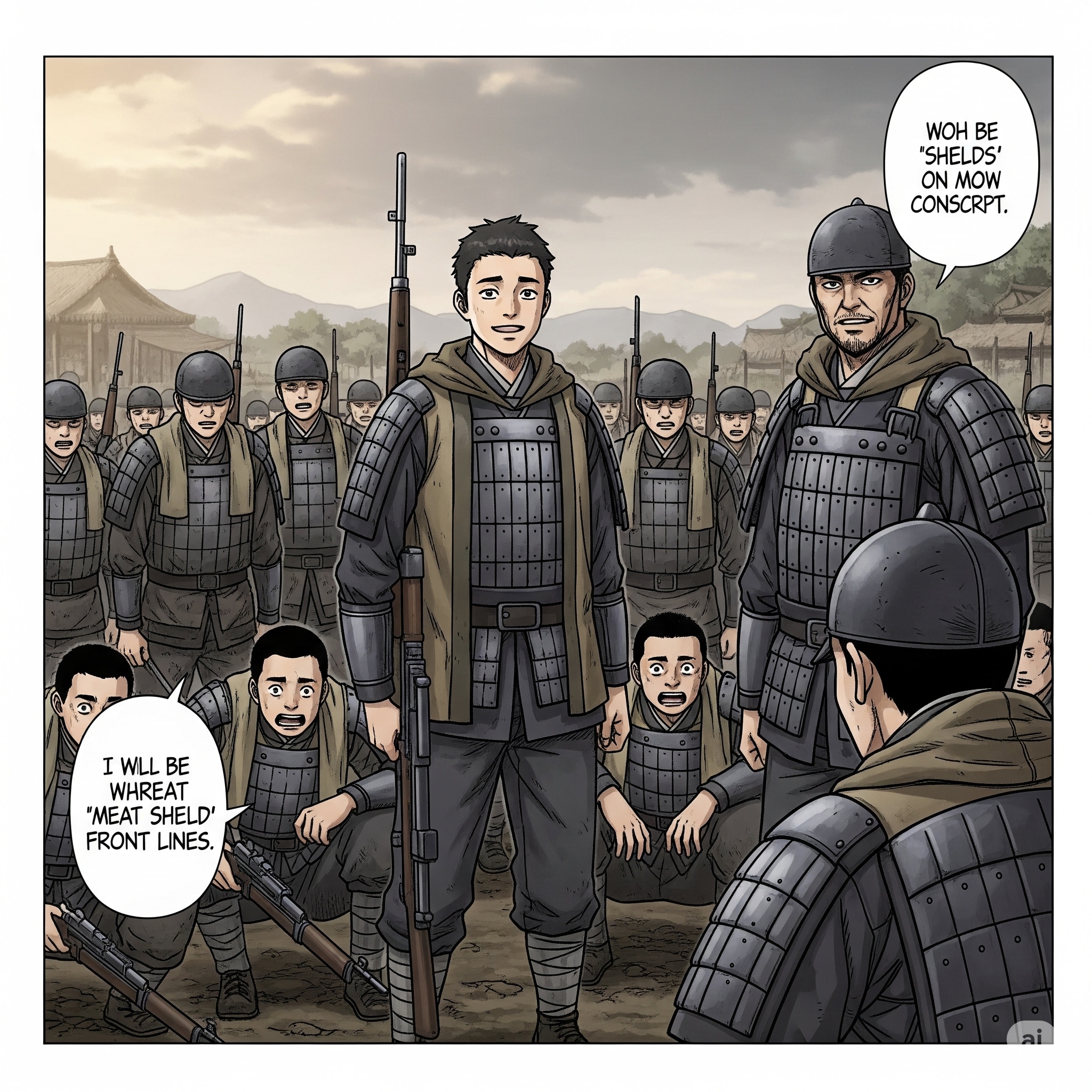 「お前たち新兵は、最前線で肉の盾となるのだ。運が良ければ生き残れるだろうな。」