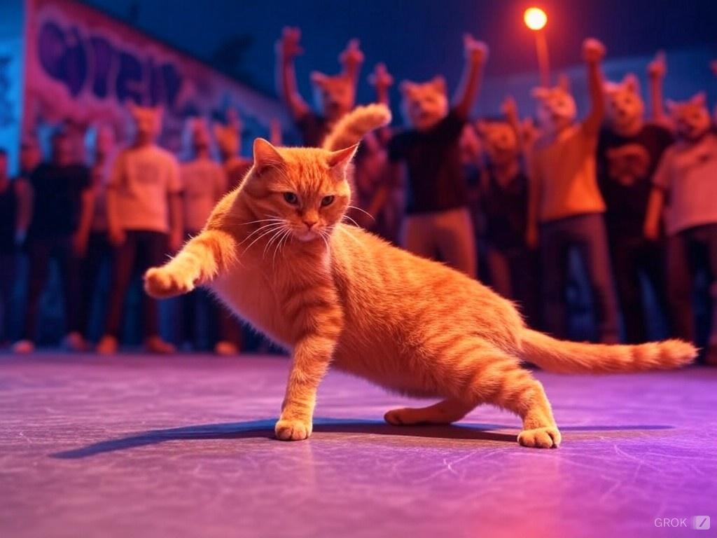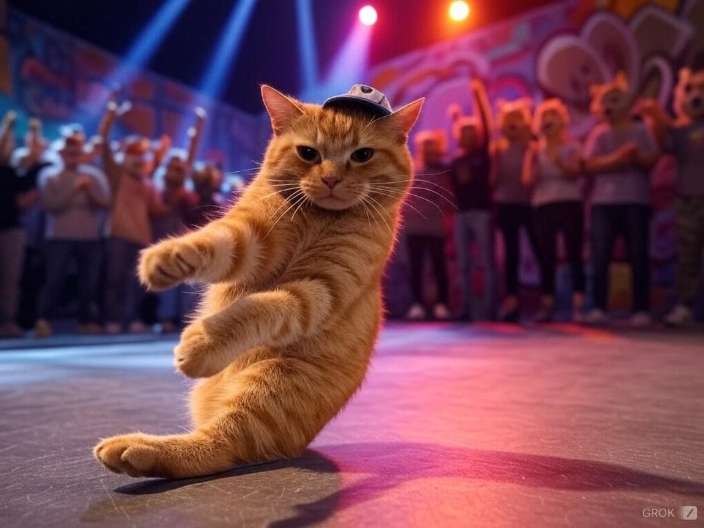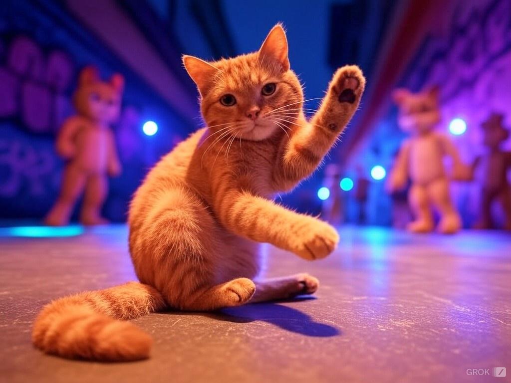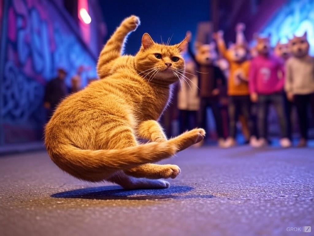 ブレイクダンスをする名猫チーズ(Grok)