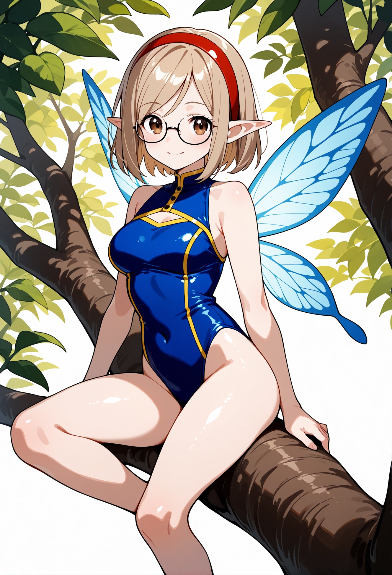 朝露きらめく枝の上、そっと腰かける小さな妖精。