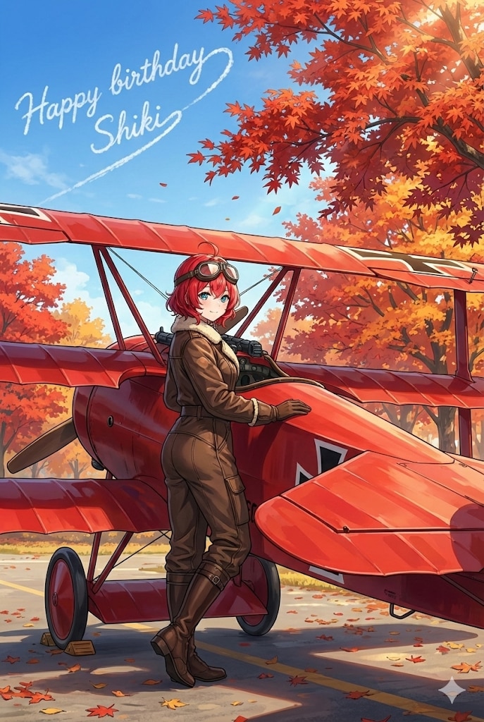 真っ赤な美しい髪がフォッカーDr.1(第一次世界大戦の撃墜王“レッドバロン”が操った、真紅の三葉戦闘機)が重なったので、合わせてみました。