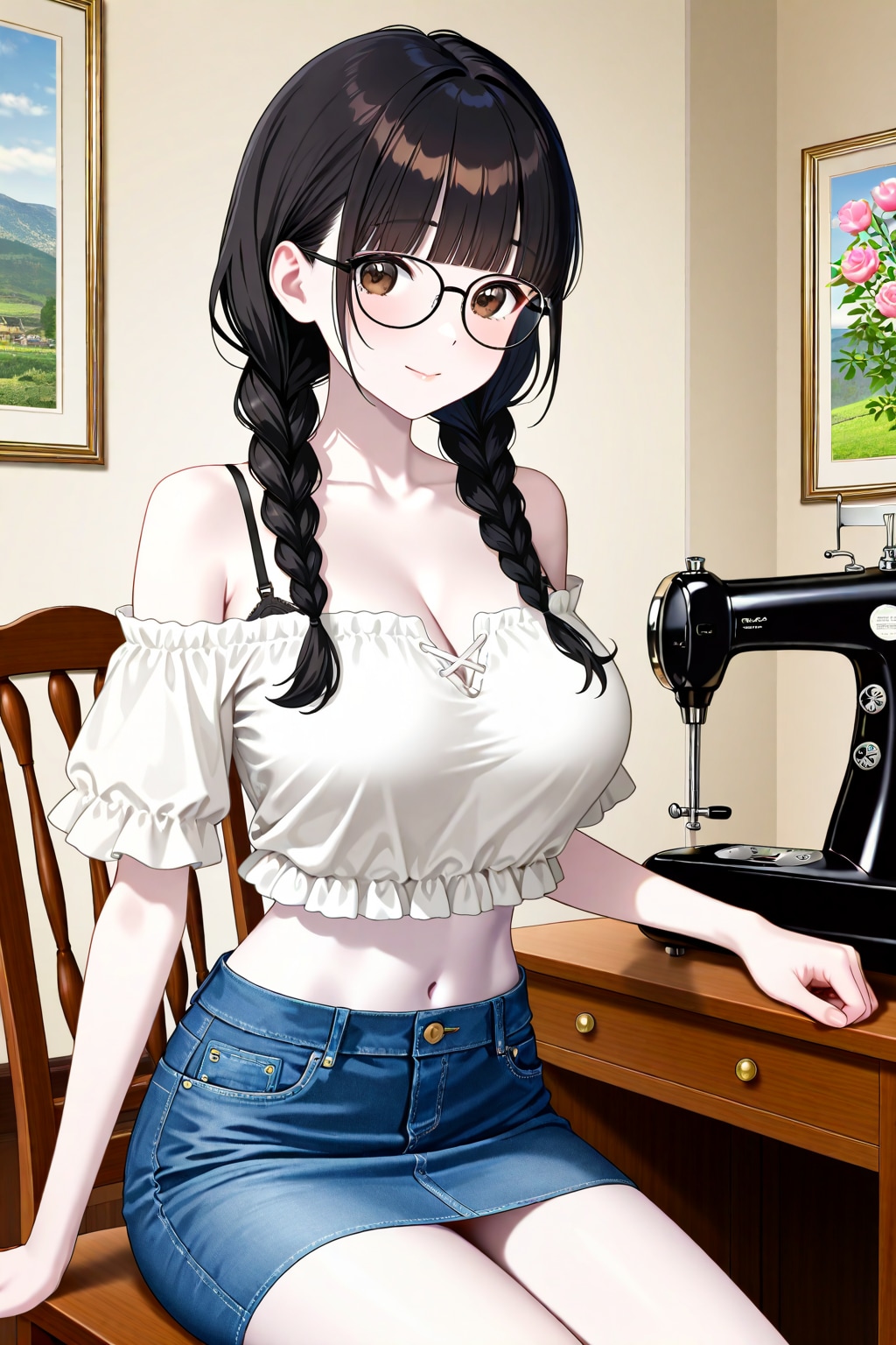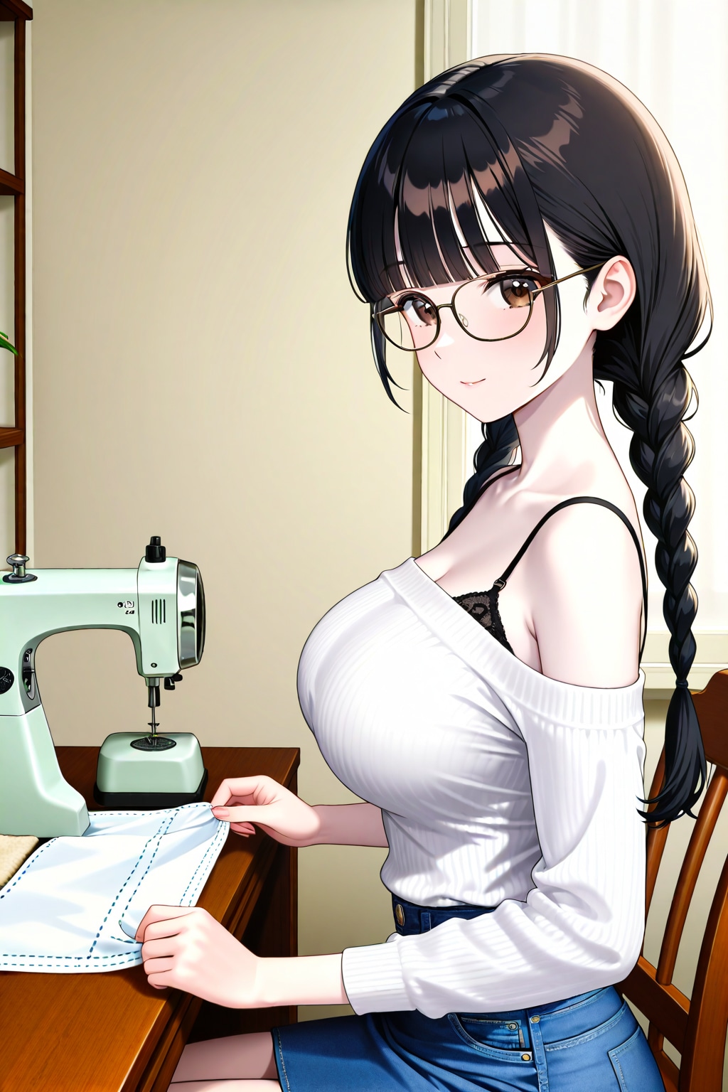 黒髪ロングのサキちゃんなら王道の三つ編み眼鏡になるだろうと思い生成w