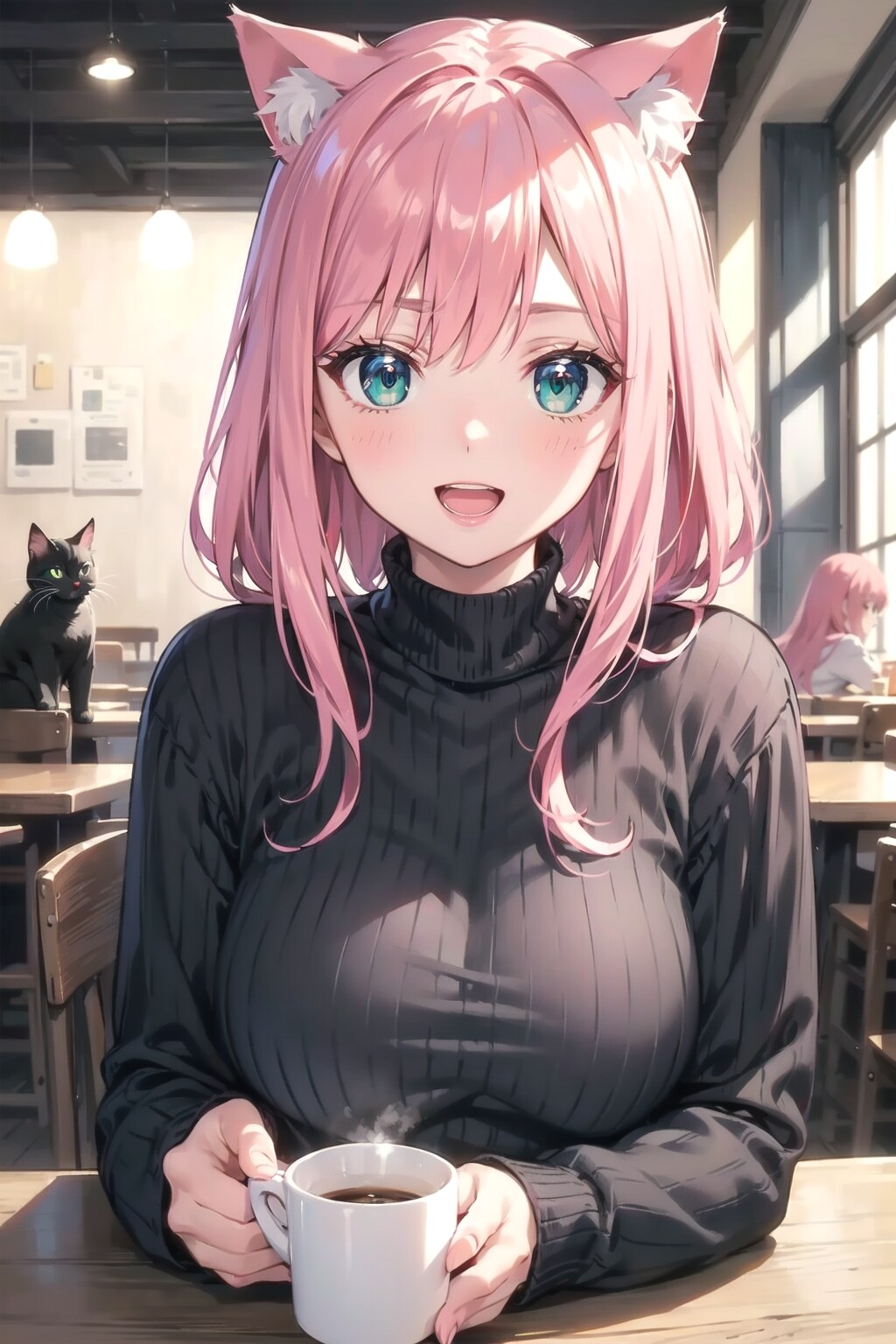 2yuさんのうちのお嬢さまと偶然会って一緒にお茶してるミクちゃん🐱