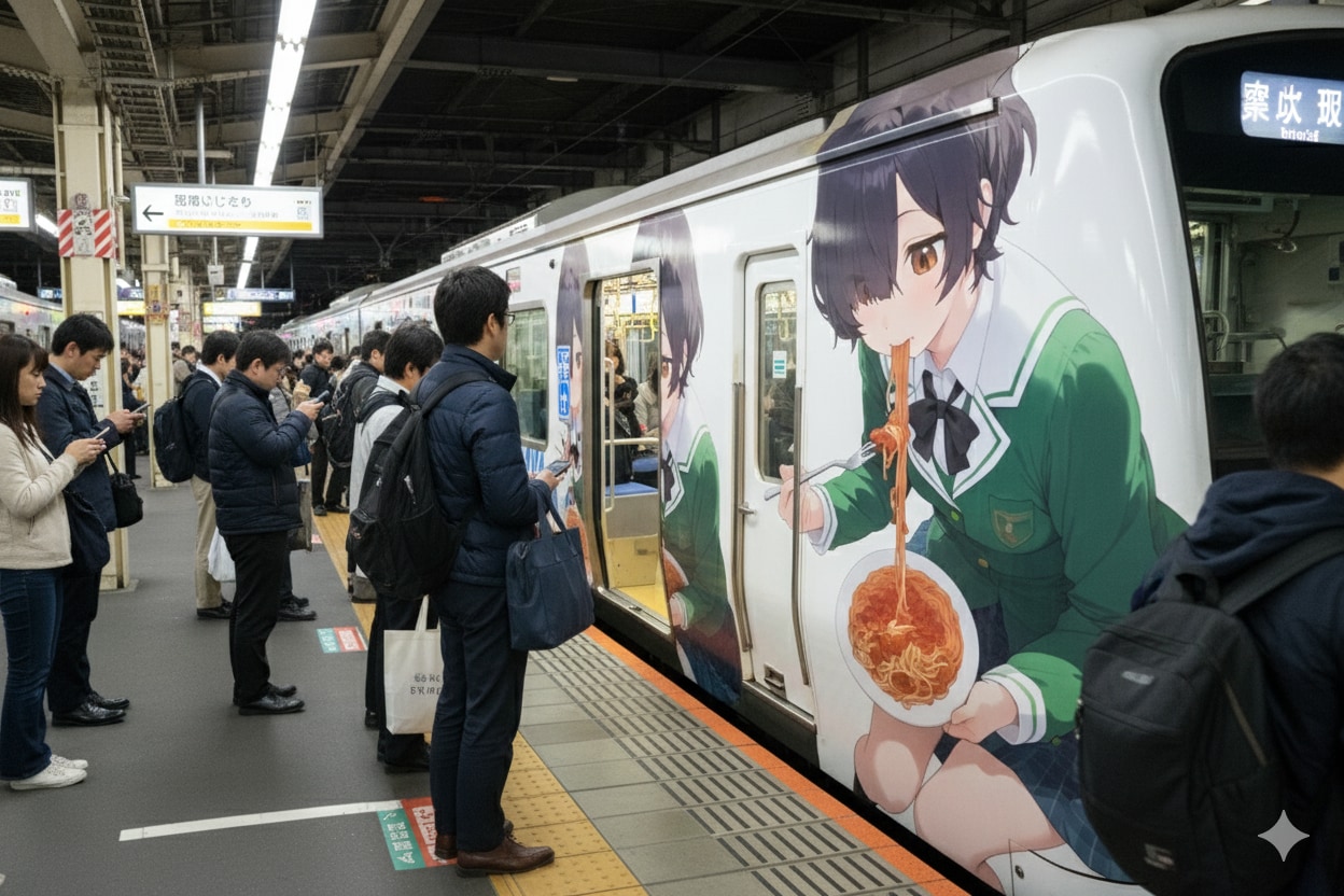を、"nano banana"で痛電車(ラッピング電車)にしてみました。