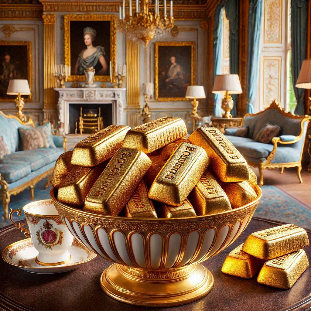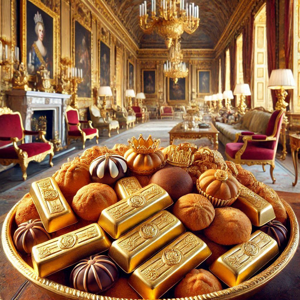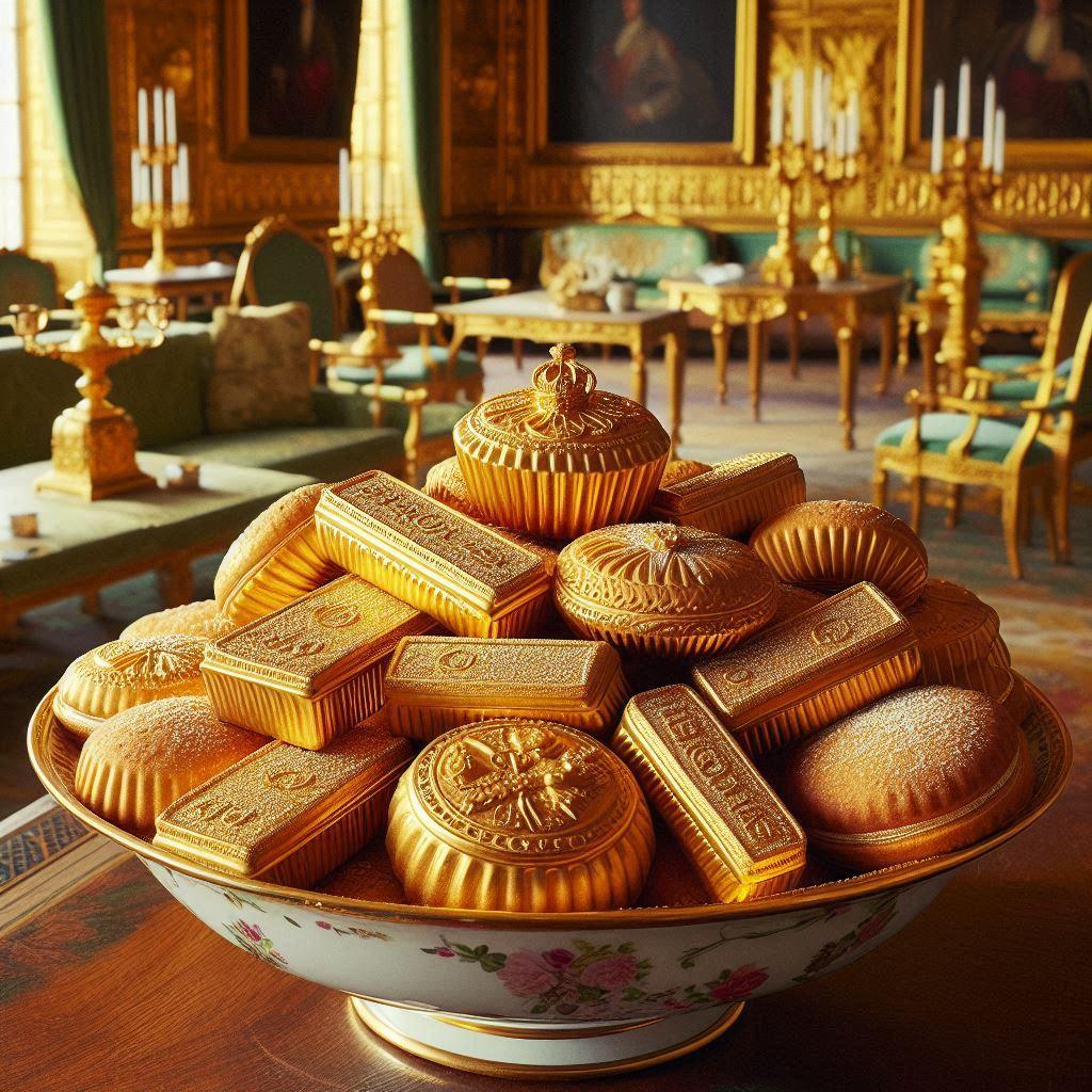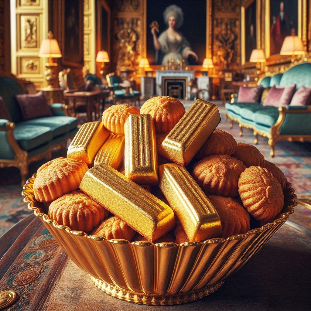 応接室で微笑むシャルロッテが差し出すのは、金の延べ棒型の焼き菓子。