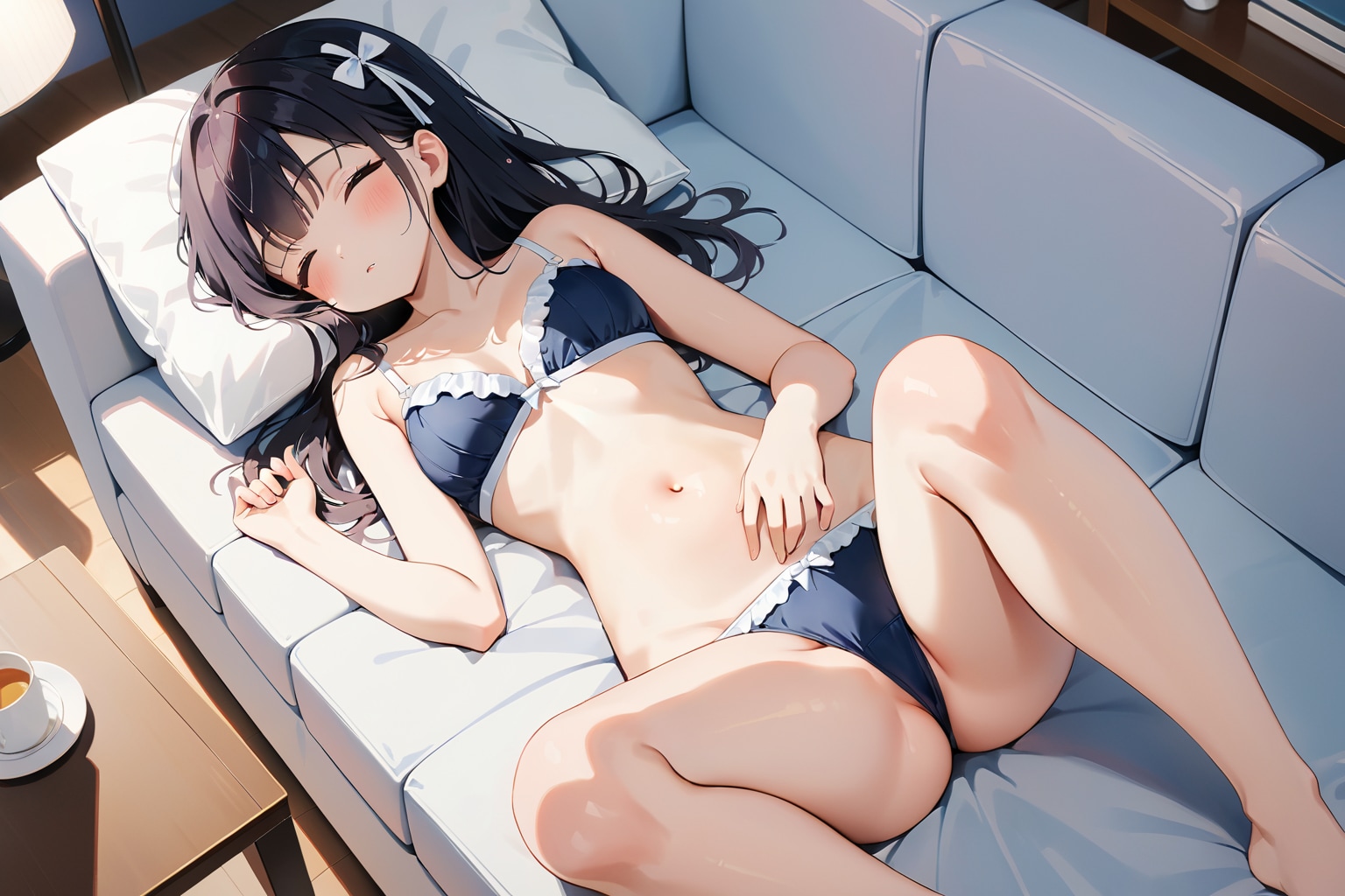 僕が飲み物を買いに行って家に戻ると何故か下着姿で寝ていました。