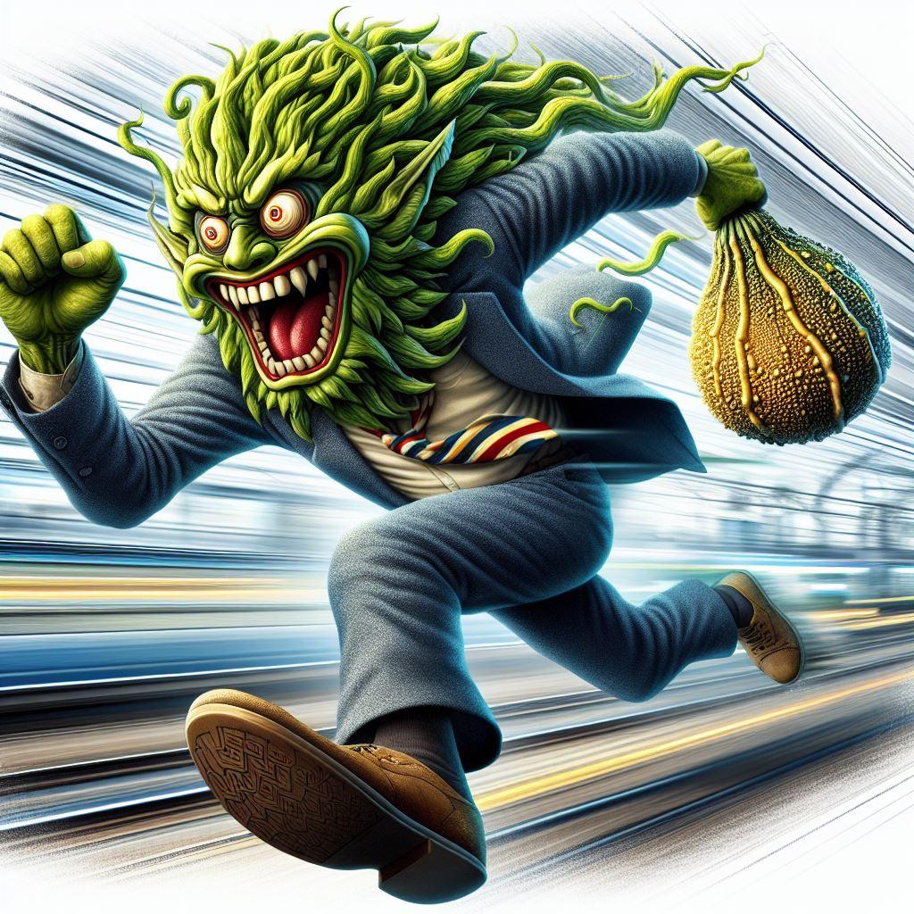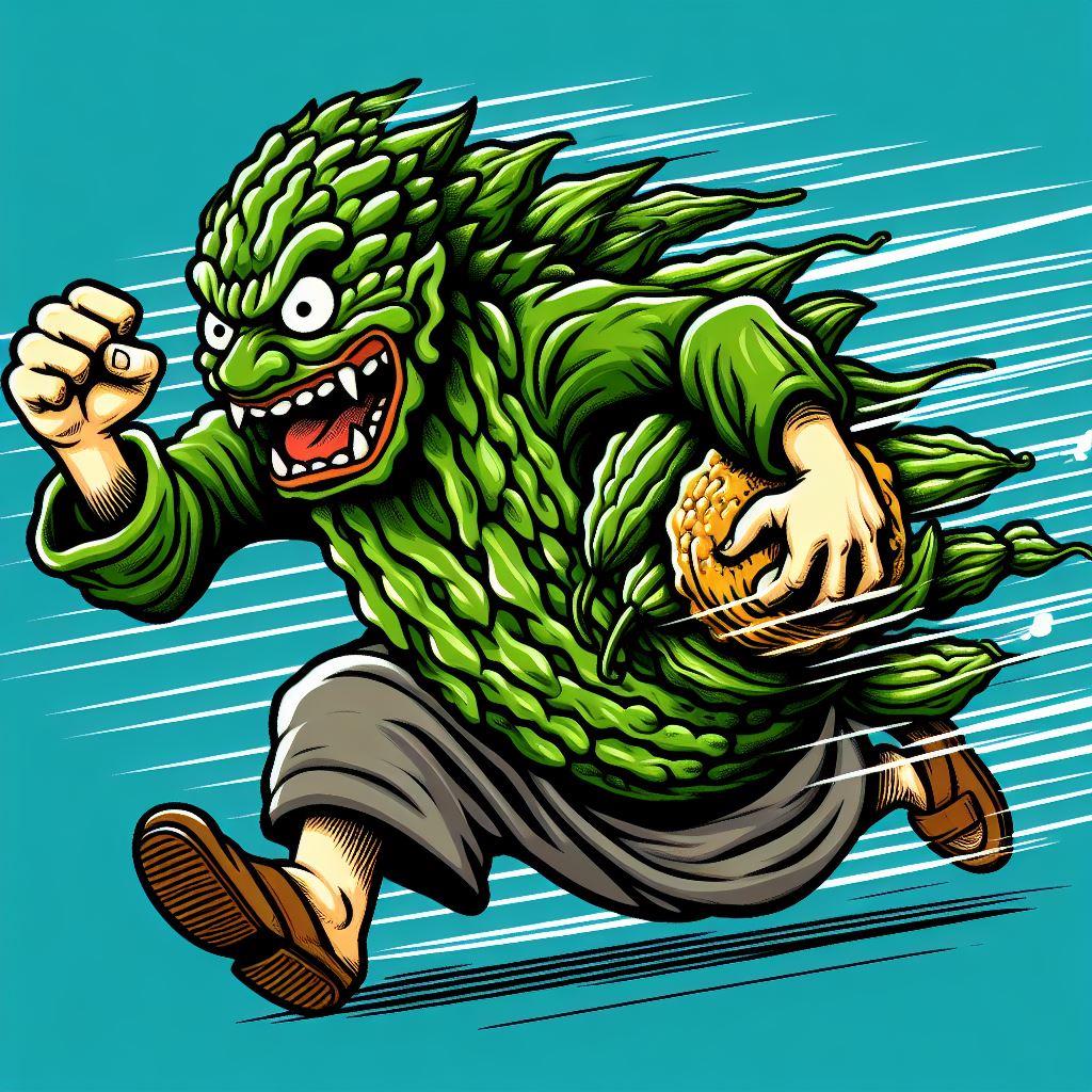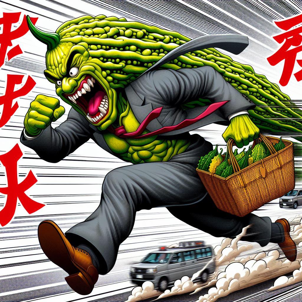 ゴーヤサラリーマンは、日本の都市伝説や妖怪の一つです。彼はゴーヤ(苦瓜)を両手に持ち、高速で移動すると言われています。彼はサラリーマン風の姿をしており、都会の道端で目撃されることが多いとされています。ゴーヤサラリーマンは、日常の風景にちょっとした不思議さをもたらす存在として、人々の想像力を刺激しています。