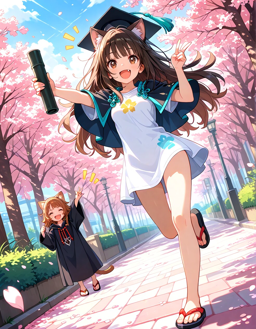 ①②桜の木から見下ろすアングルをやってみたかったもの。①はIL系→Animagine4.0→IL系のi2iです。