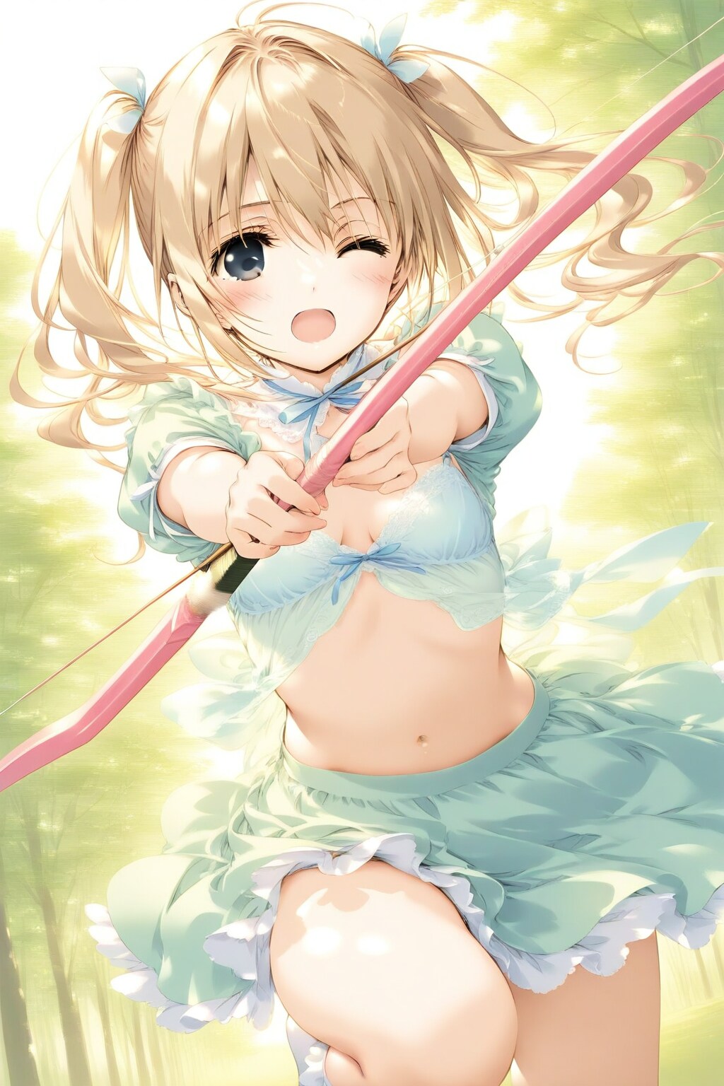 1)昨日のプロンプトから「弓矢を持つ絵」という指示を追加、ポーズ指示も削除。