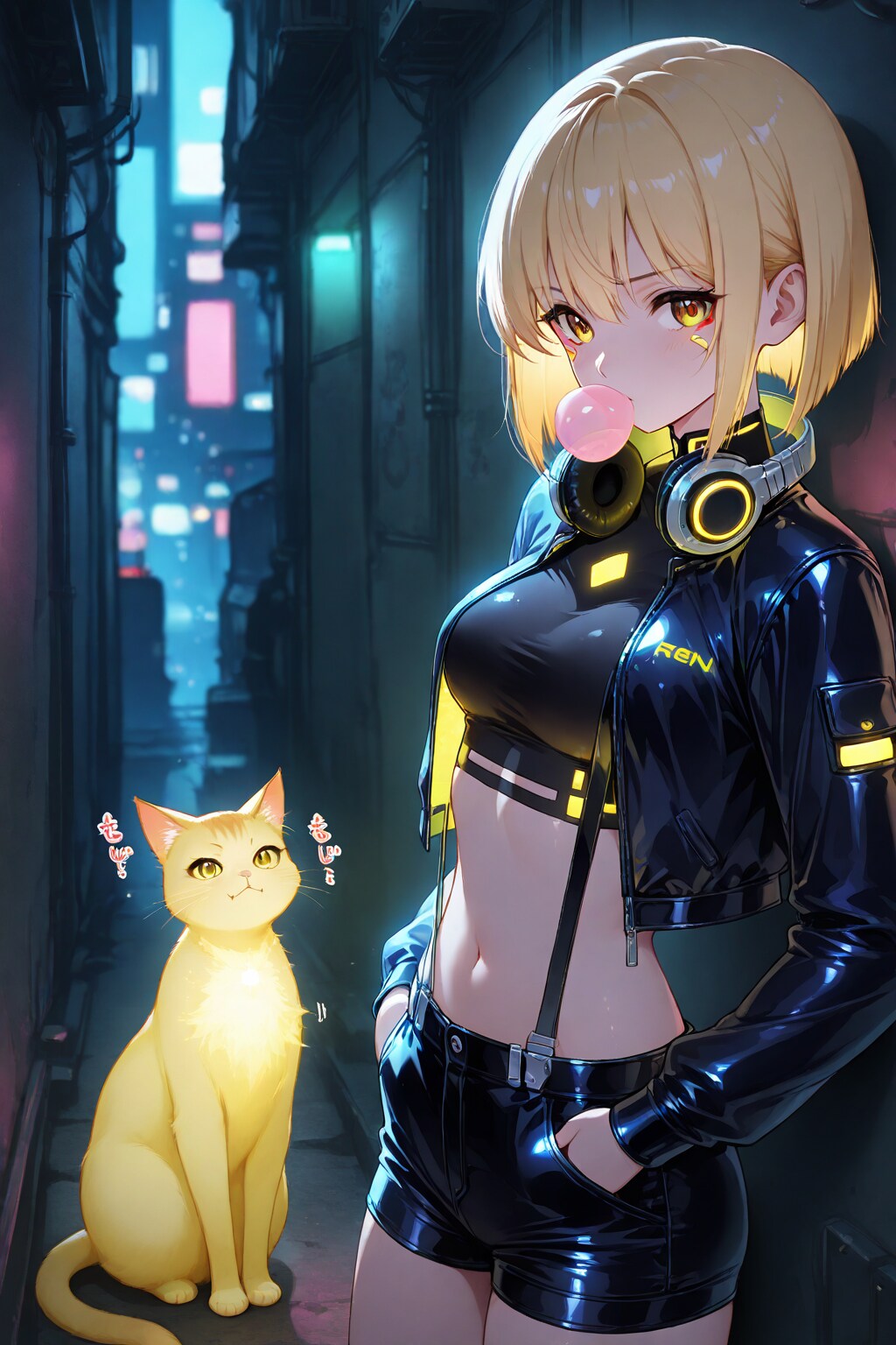不満そうな表情を生かせるファッション(?)としてサイバーパンク風にしてみました。