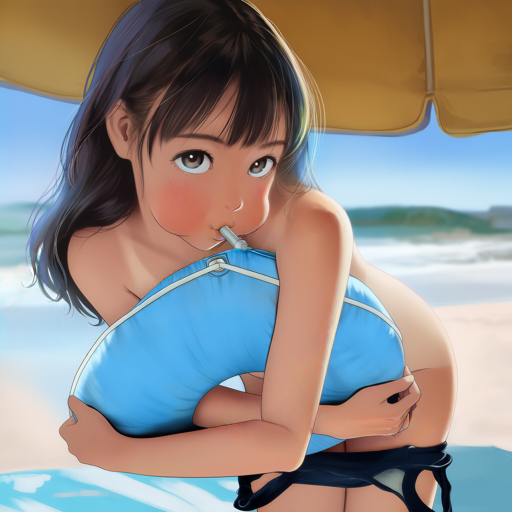 (み・_っ・)様 投稿企画「浮き輪膨らます女の子」