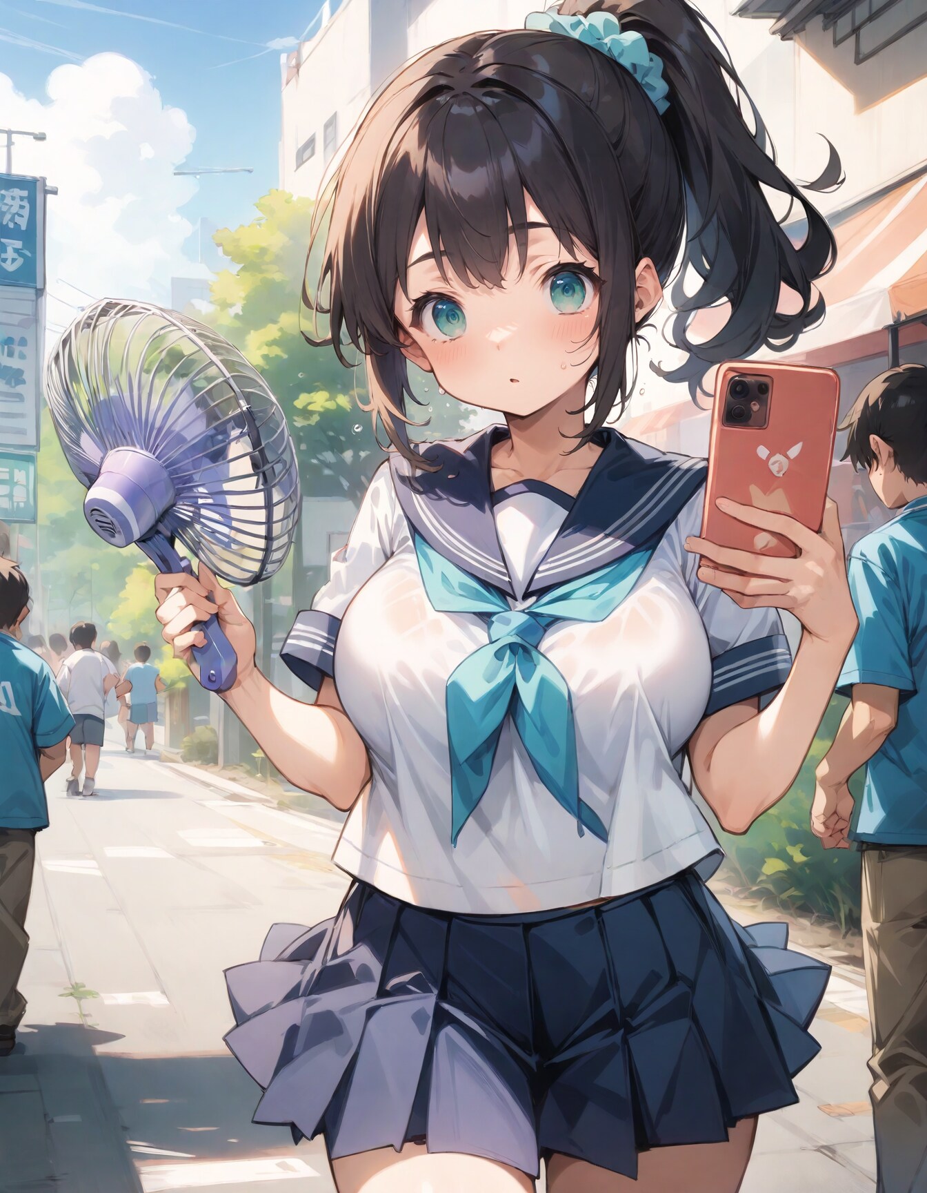 片手にスマホ、もう片方にモバイル扇風機を持ってテクテク歩いておりました。