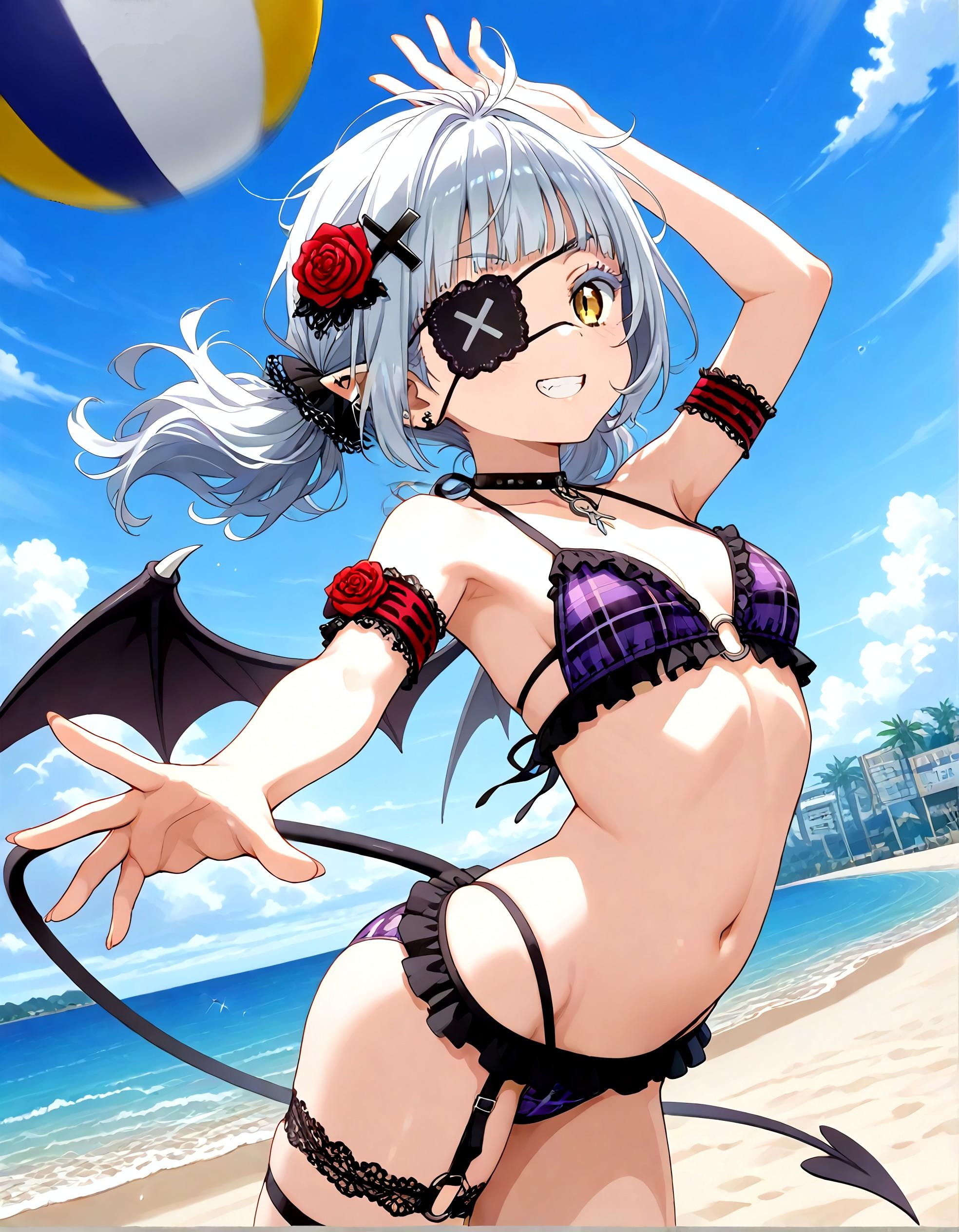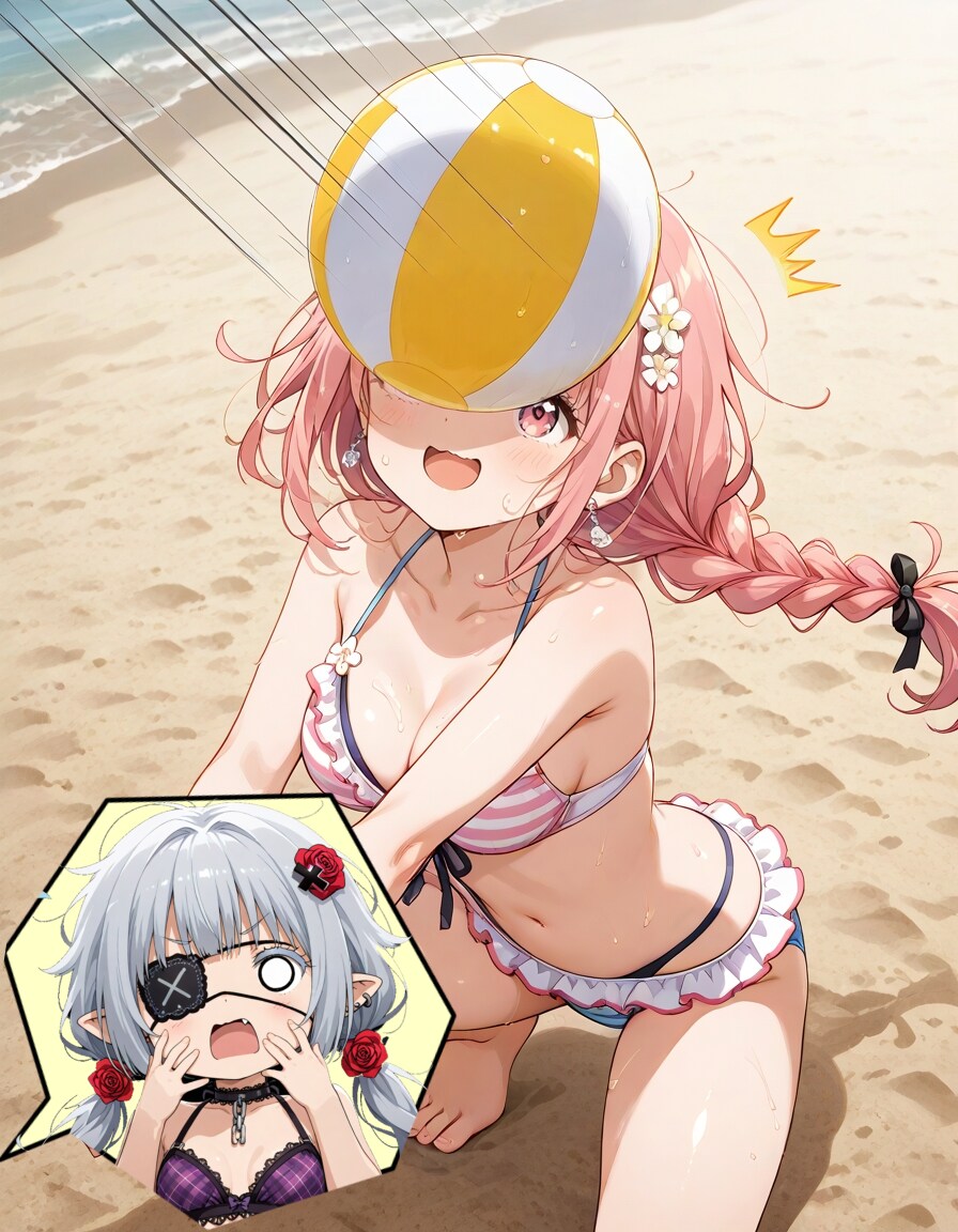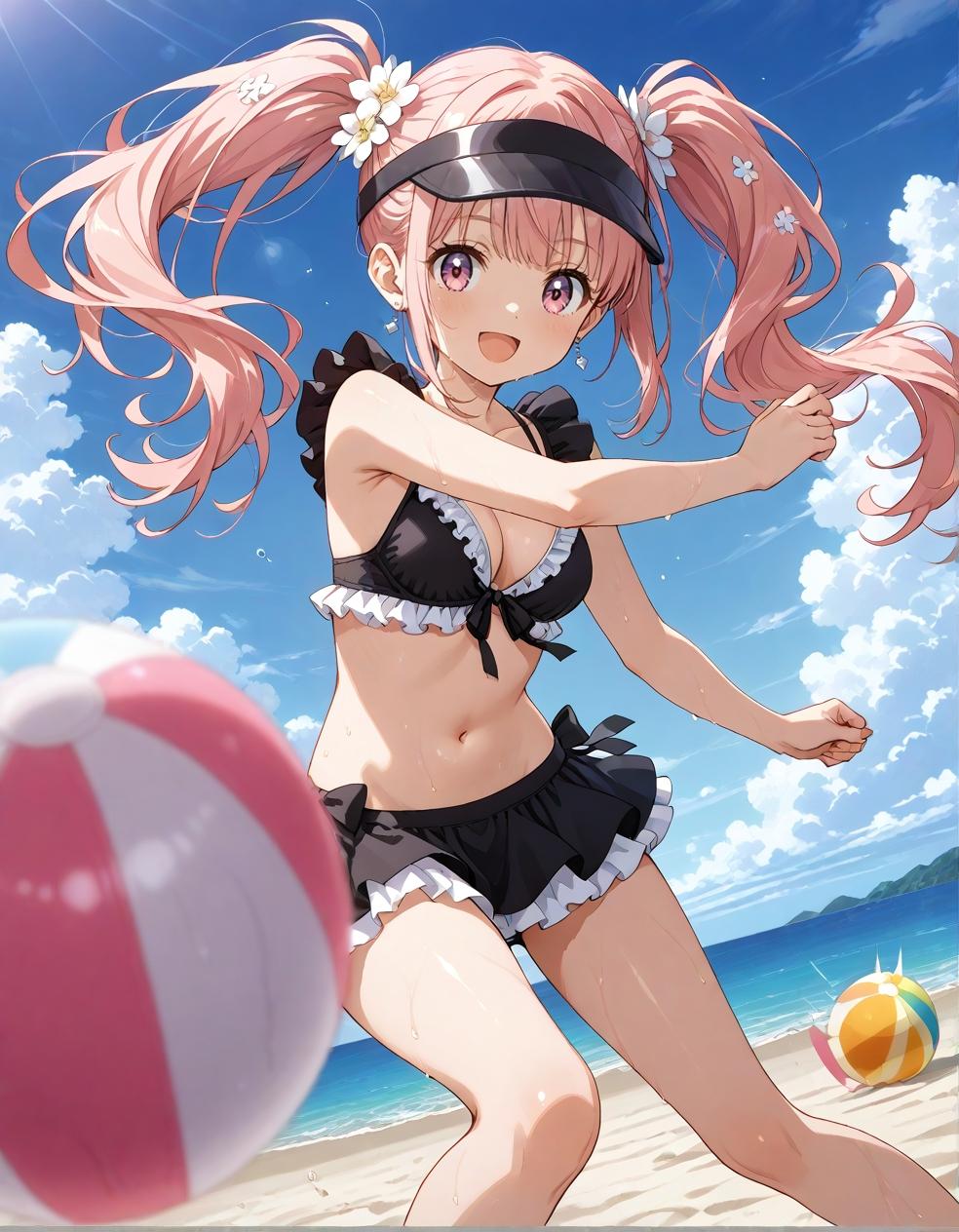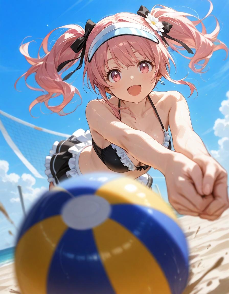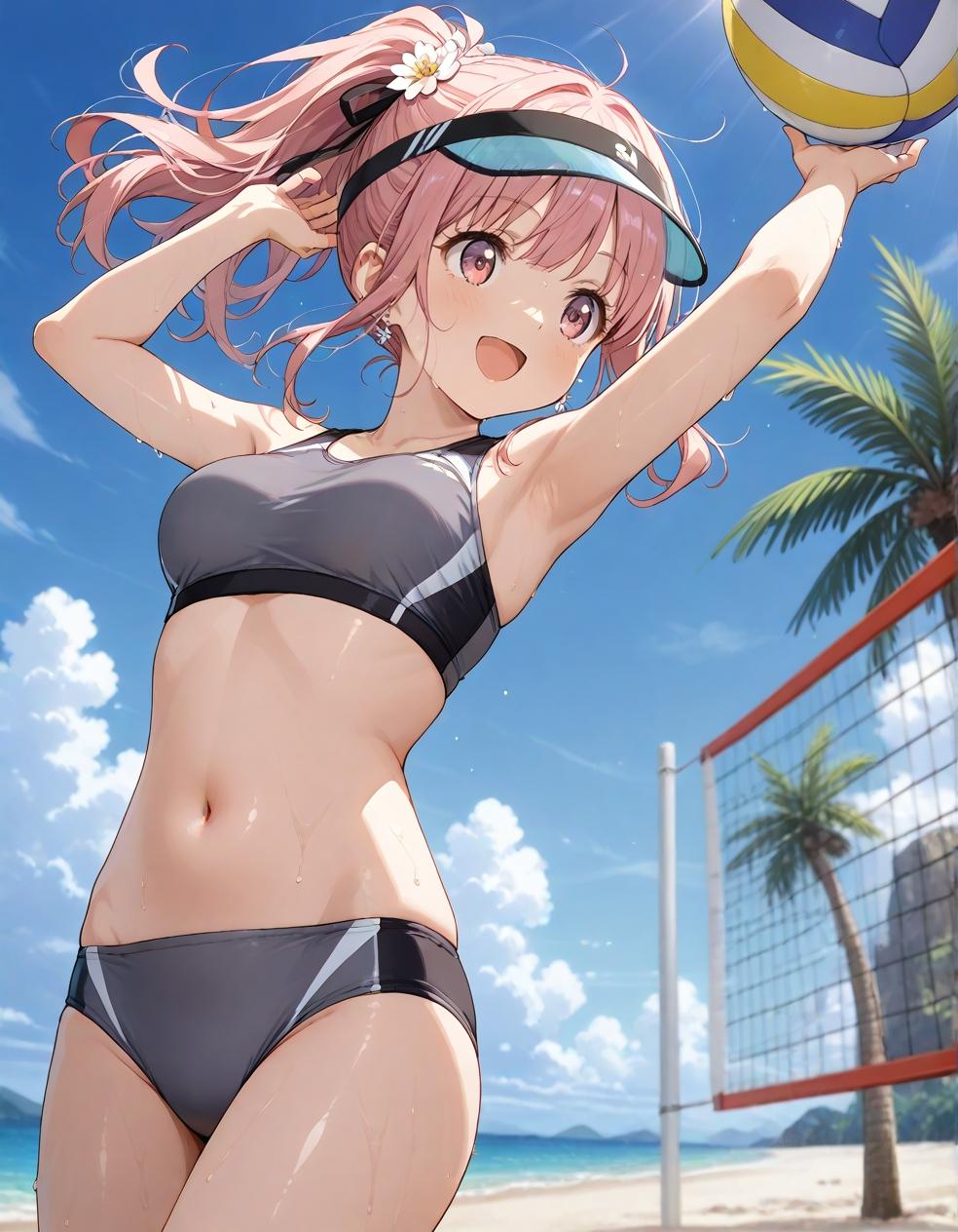 (運動音痴の貴方が私とビーチバレー?いいけど、手加減はしないからね。いっくよ〜!)