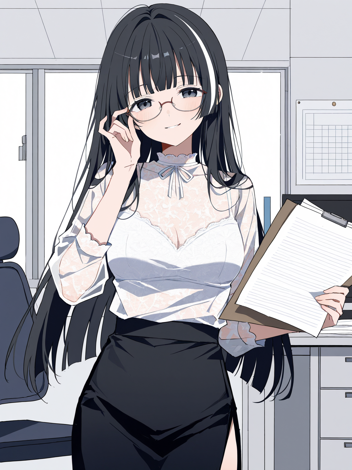 髪に差し色の白、大して変わってませんがメガネと胸の大きさを変えて知的にw