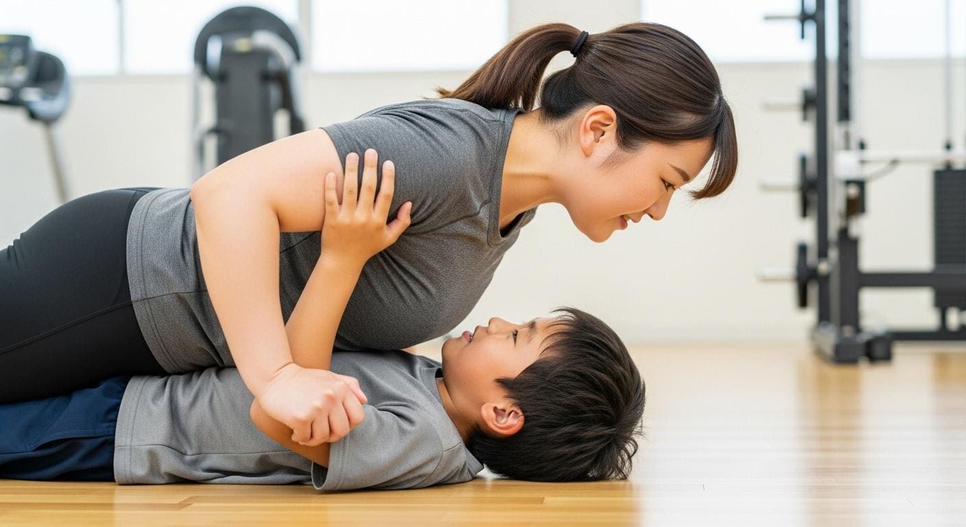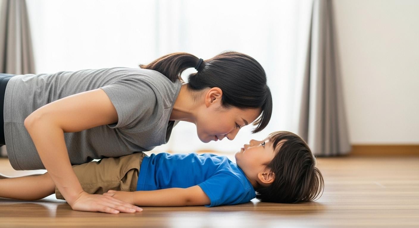 腕立て伏せの下に潜り込んで邪魔する