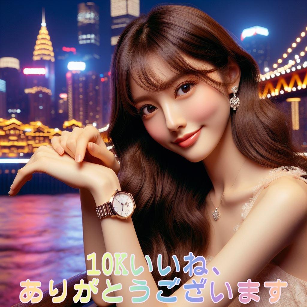 この絵は、重慶で時計を見ている萌ちゃんです。10,000......10K......じゅうけい......とけい😅
