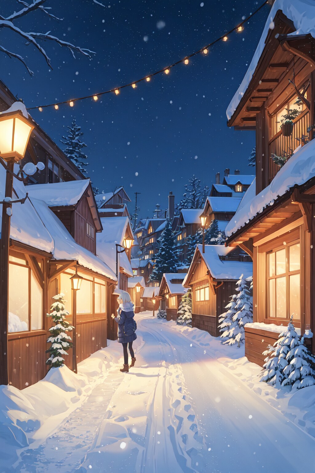 雪降る街の灯り