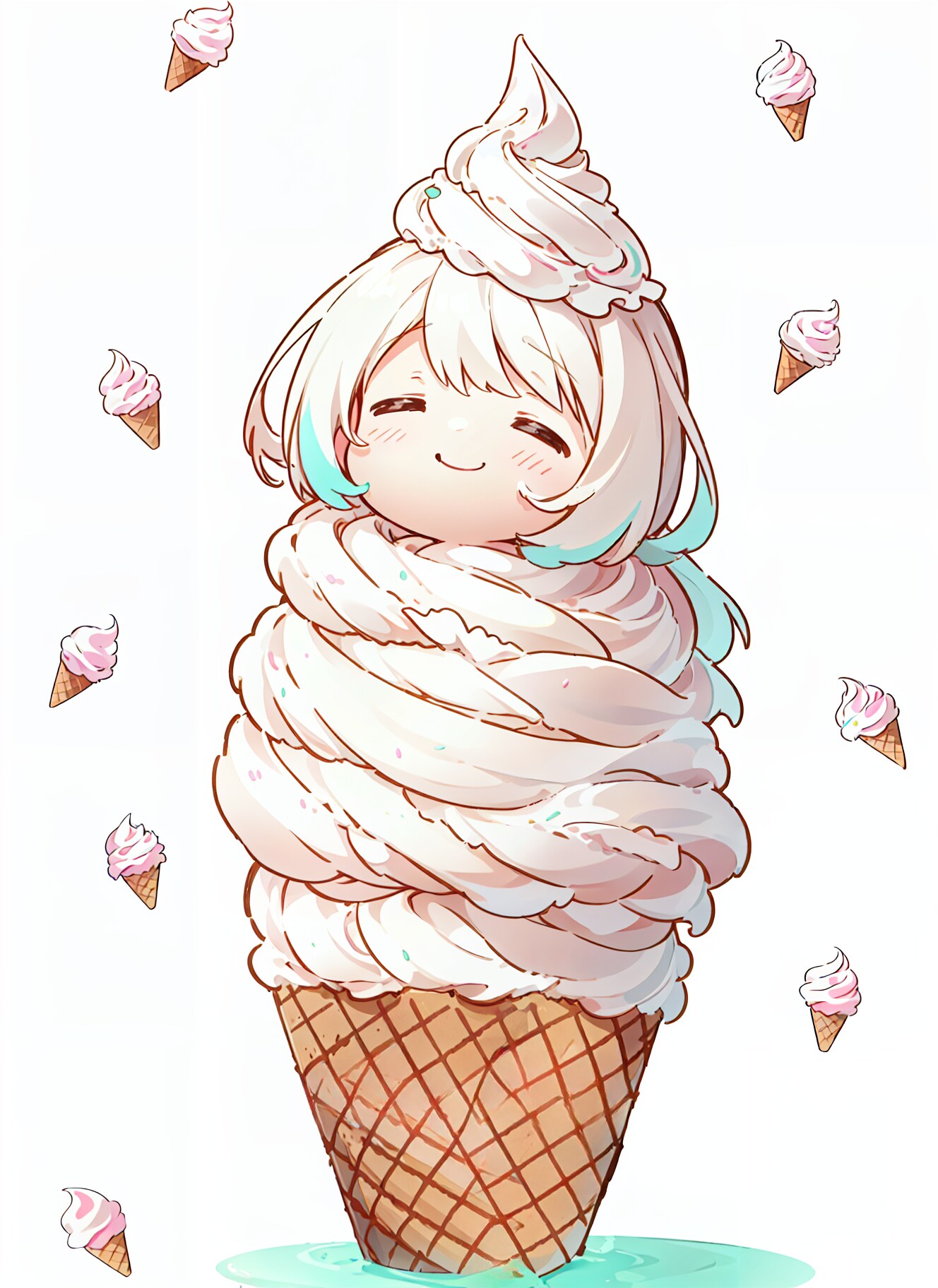 ソフトクリームLoRAとジェラートstyleLoRAを使用。