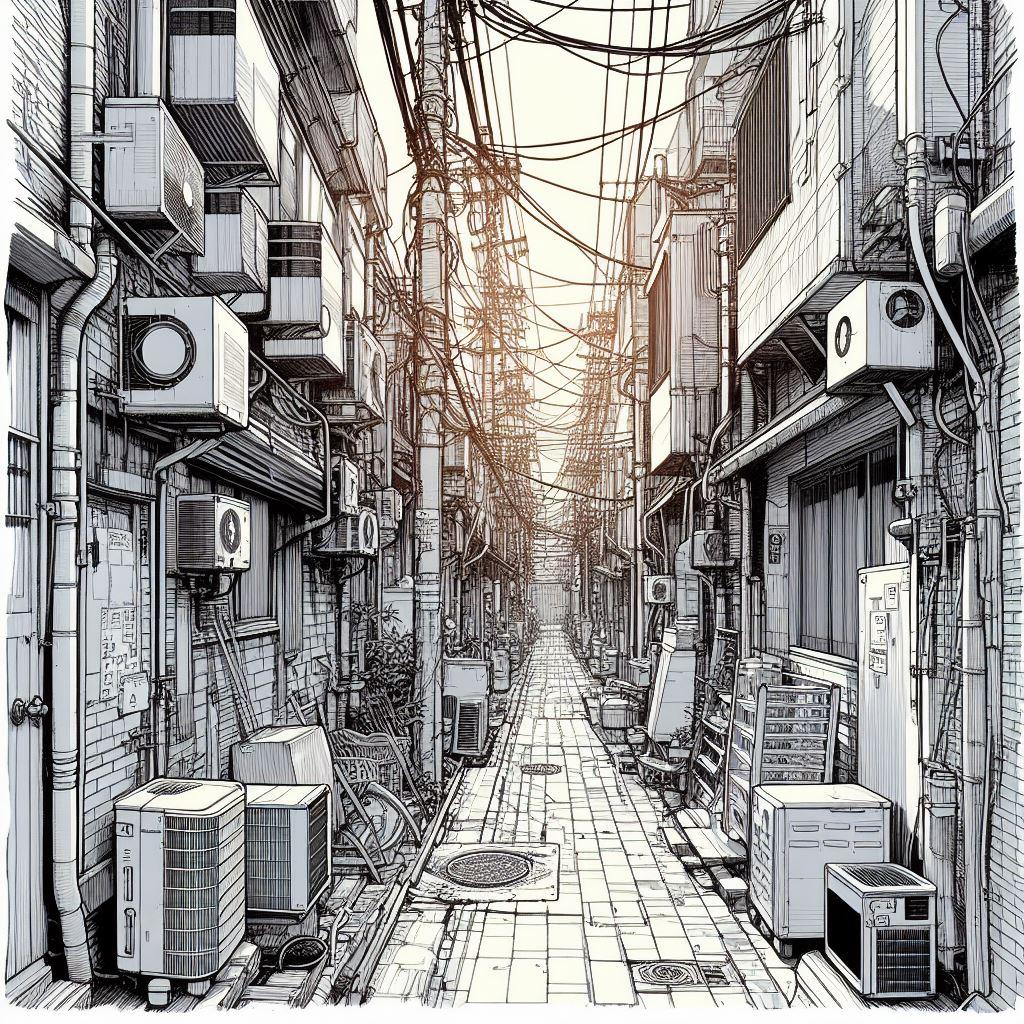 路地裏の雑然とした雰囲気を目指して生成しました。