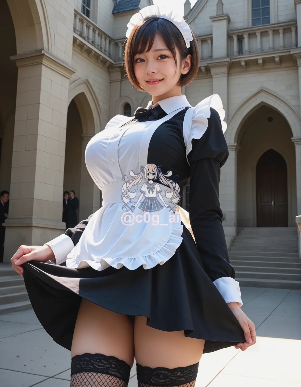 今回のメイド服は網タイツと絶対領域縛りでやってみましたw
