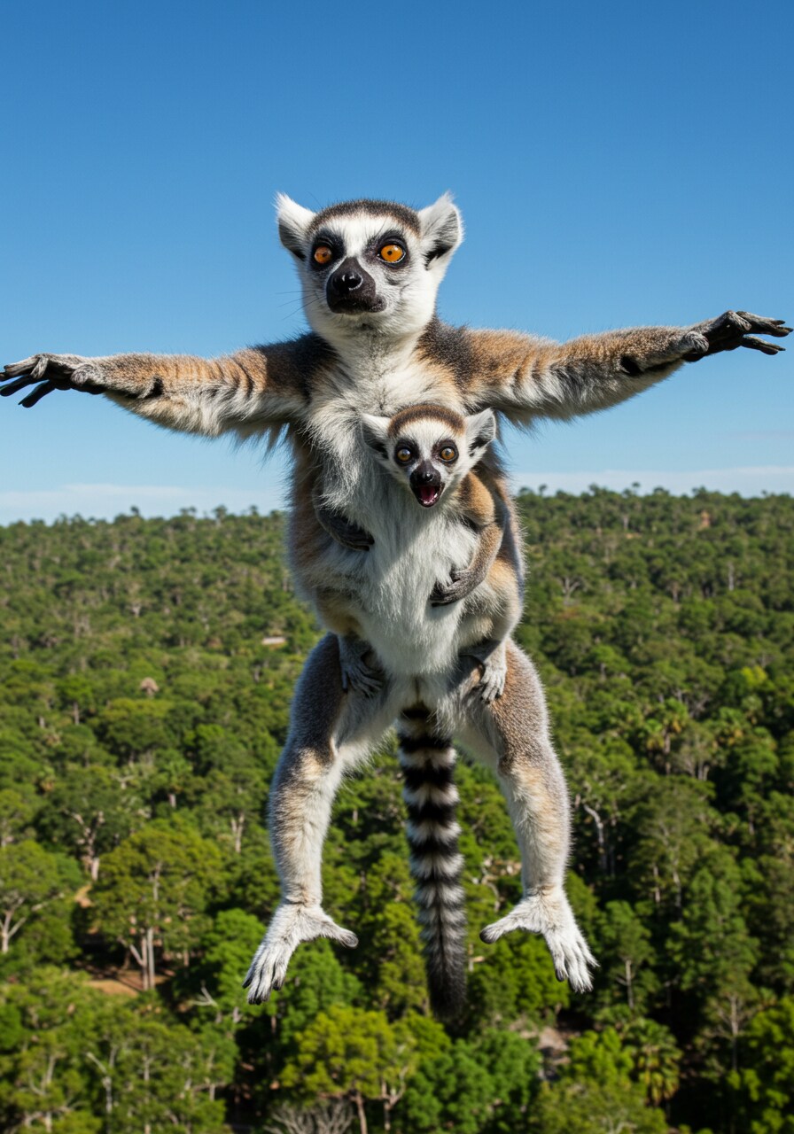飛び過ぎたワオキツネザル