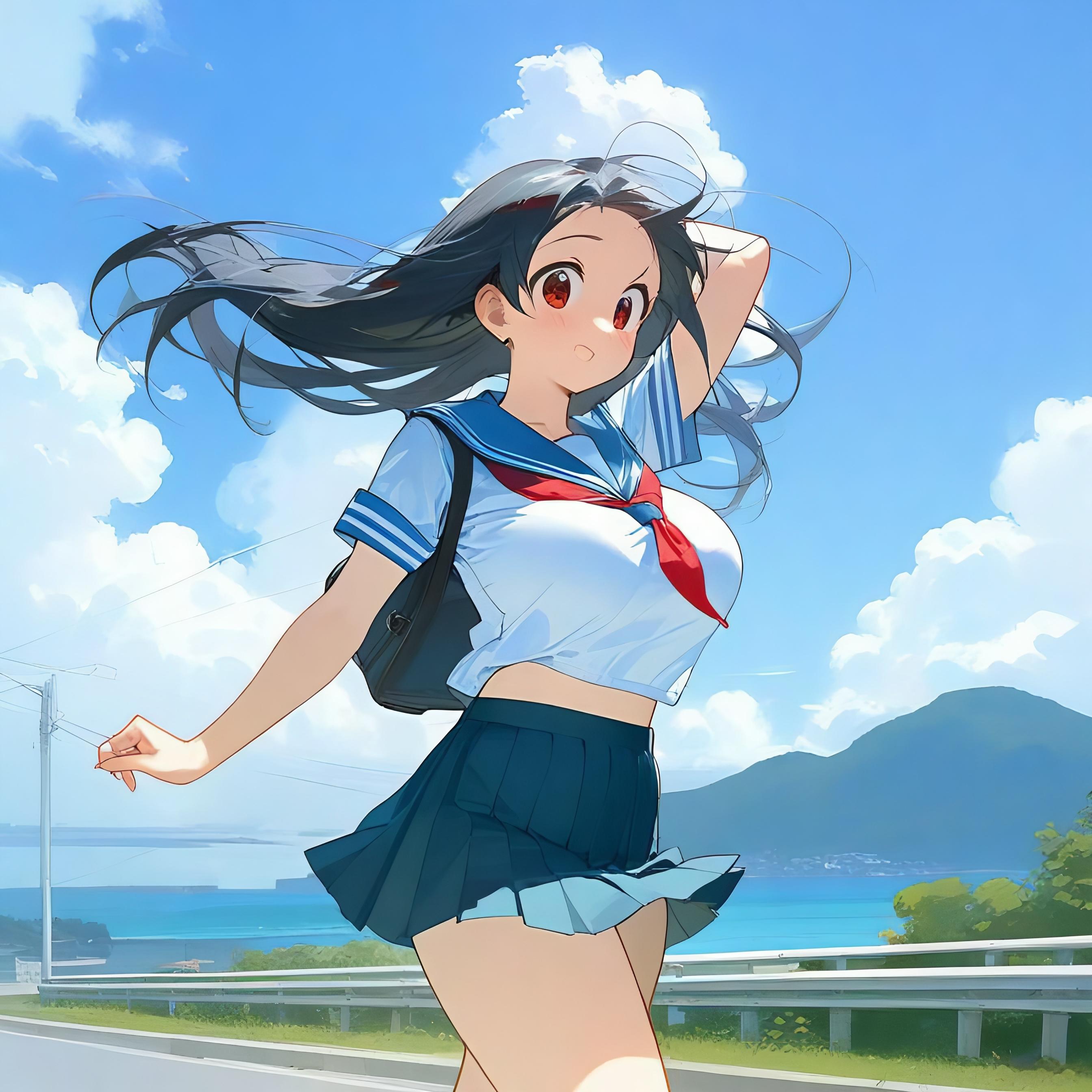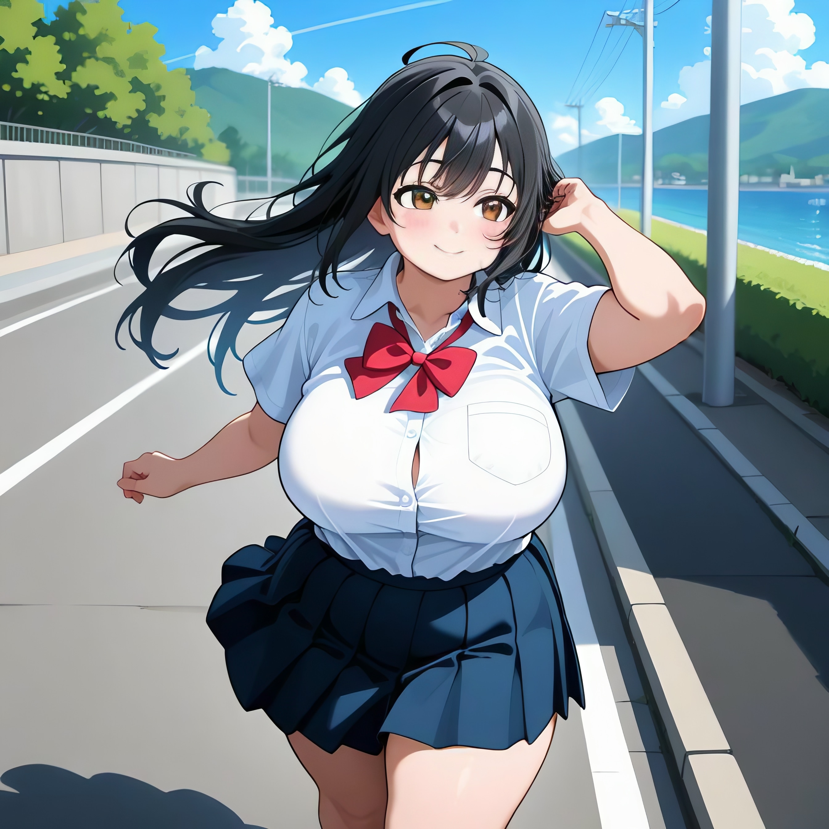 夏の風に吹かれての同じテーマで、女の子を巨乳もしくはぽっちゃりにしてみました。自分的にはこっちのほうが可愛いな。