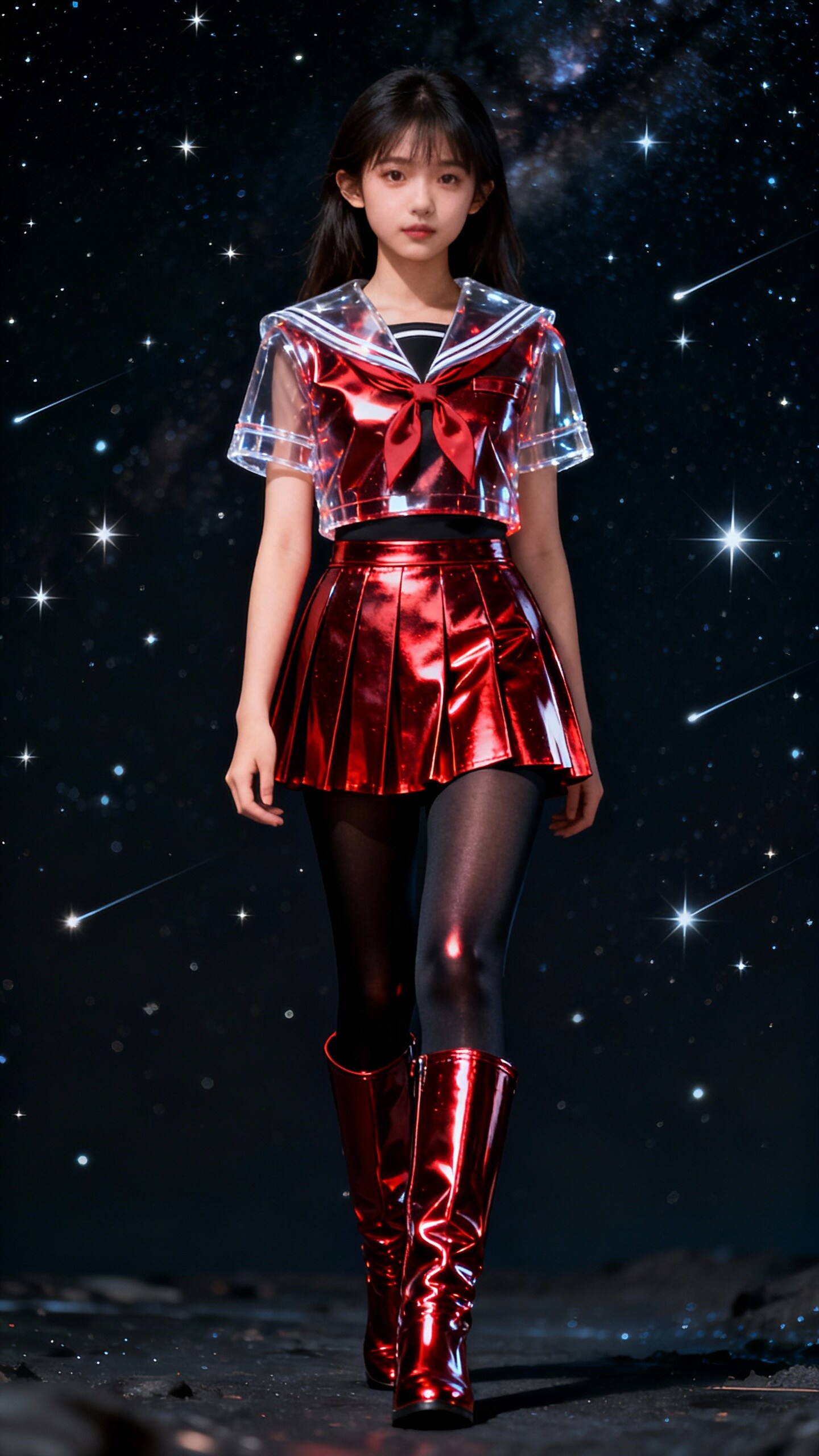 透明アクリル製セーラーカラーのメタリッククリムゾンレッドセーラー服