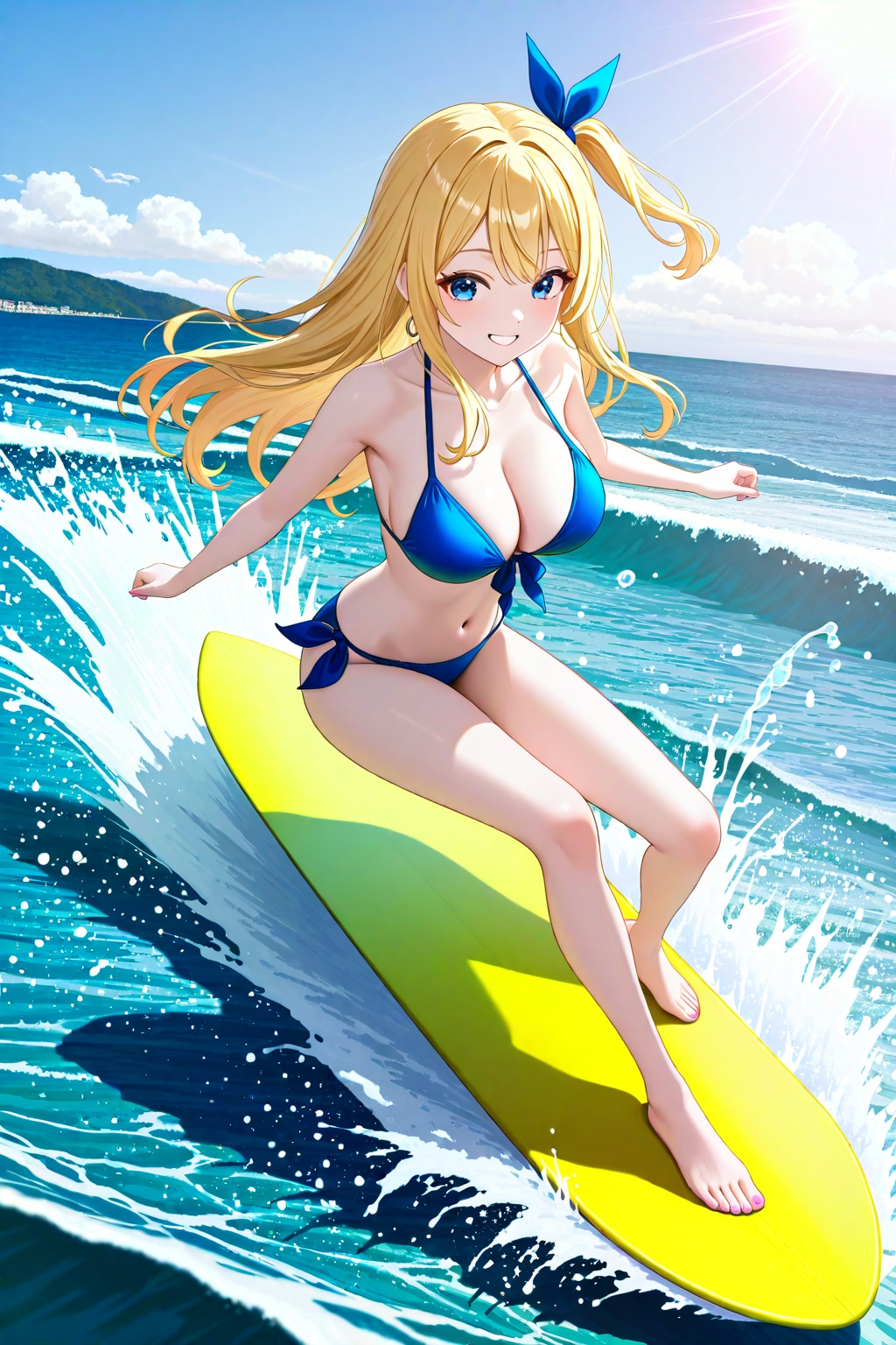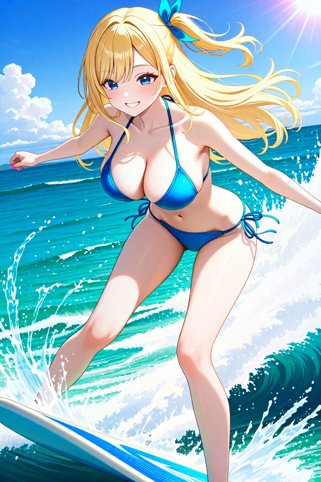海サマーフェスで初めてサーフィンをやるナミちゃんだがわずか3日間でちゃんと波に乗れている!