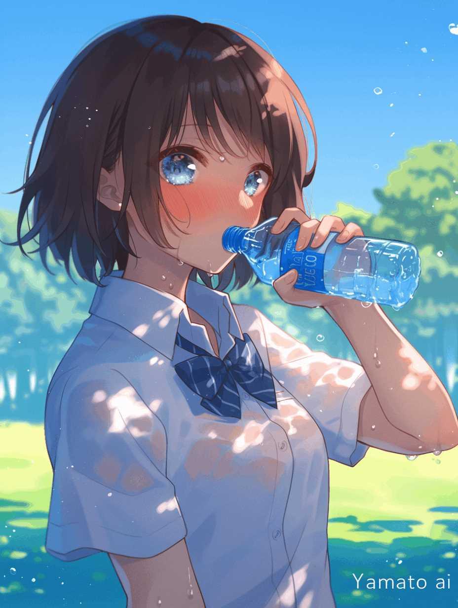 暑くて汗だく💦お水美味しい~💕