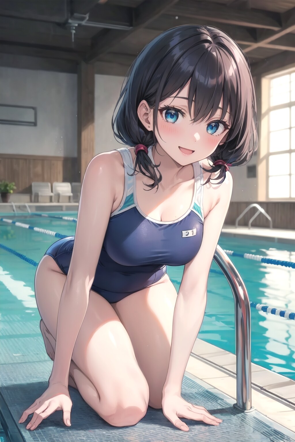 室内プールでスク水