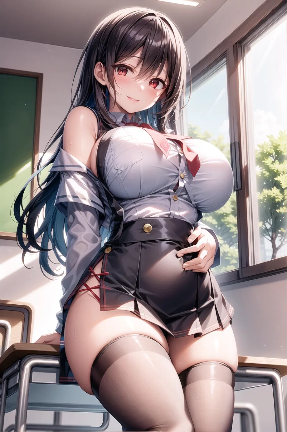 見上げオフショルダー制服。