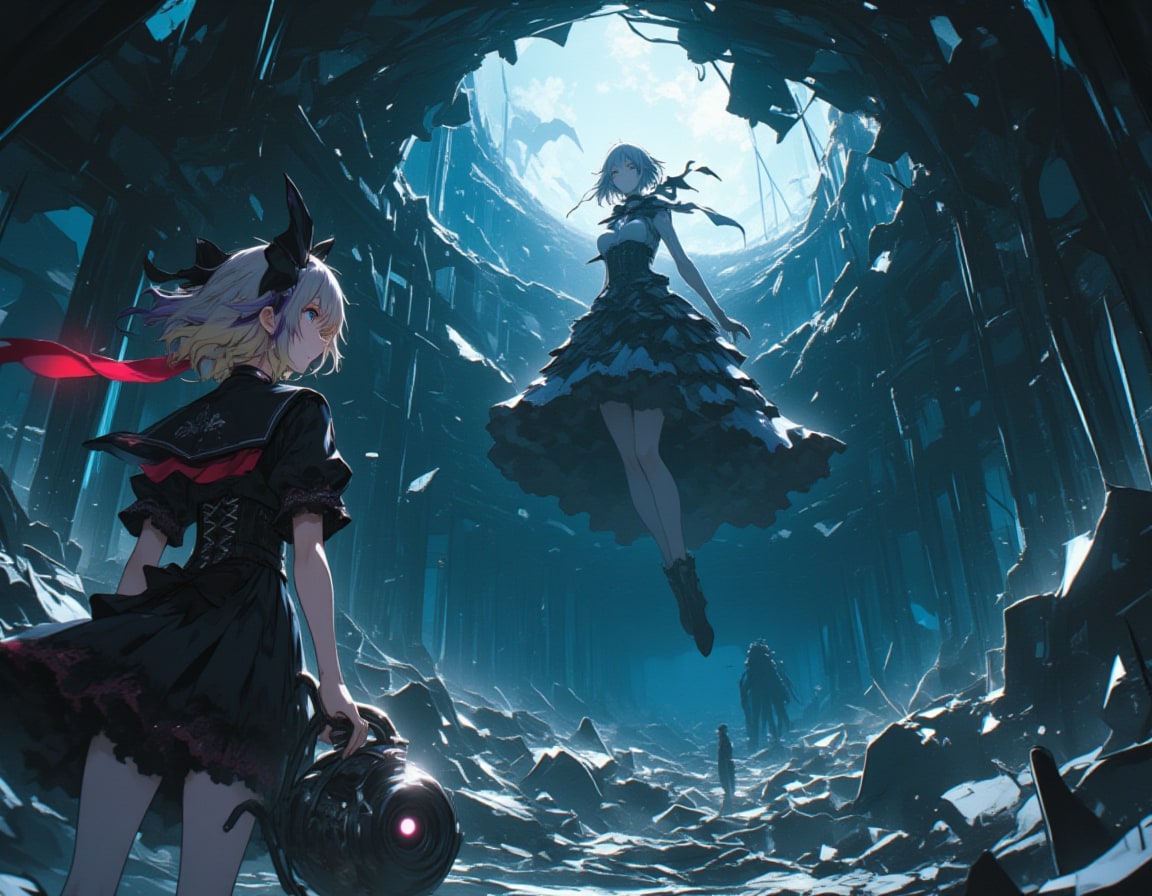 落下してくる瓦礫と共に、薄暗かった部屋に月の光が満ちる。