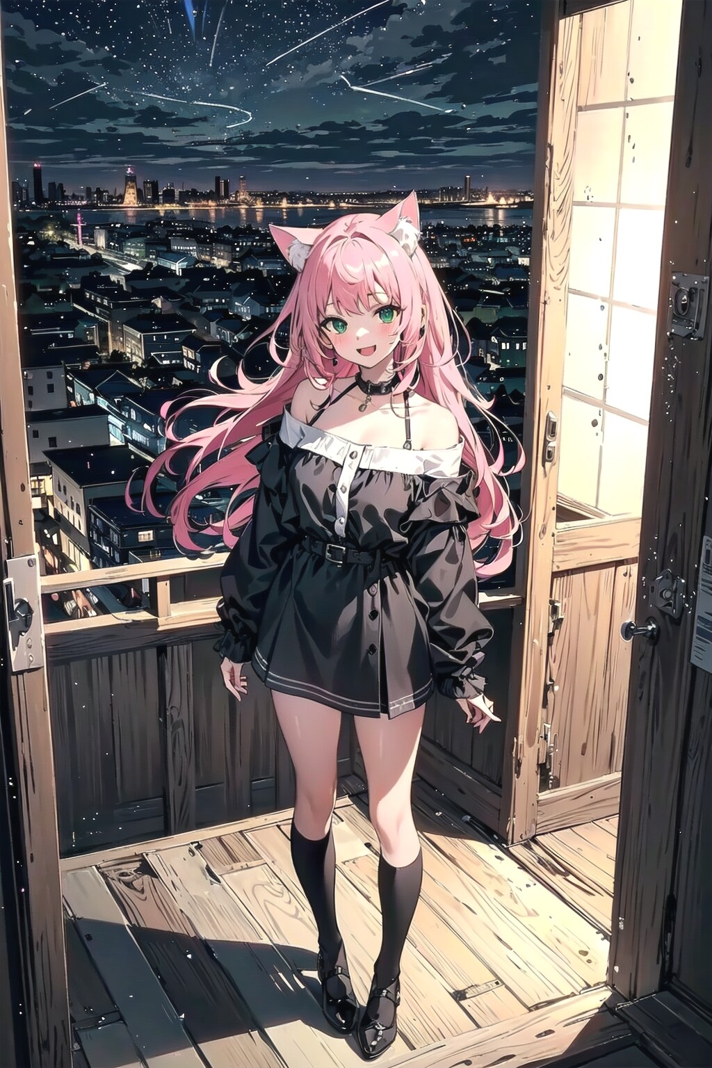 夜景をバックに笑顔を見せるミクちゃん🐱