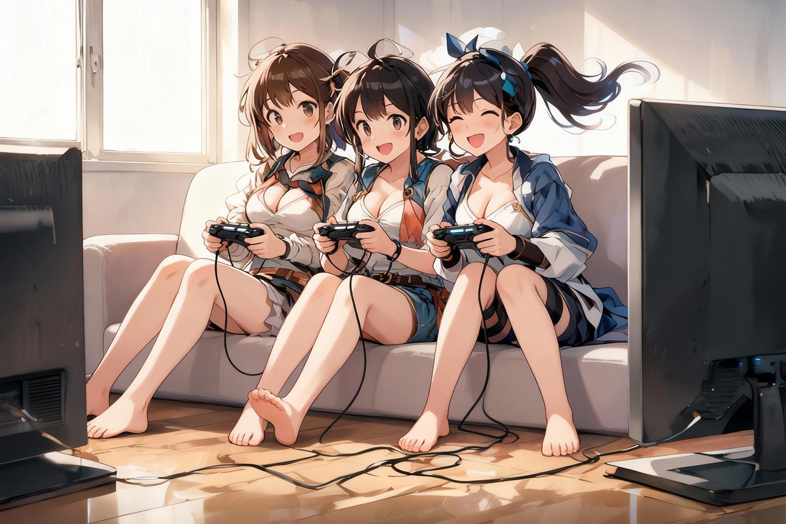 そこで、この崩れたMAI-image-1画像を、i2i元として読み込み、プロンプトを3girlsに