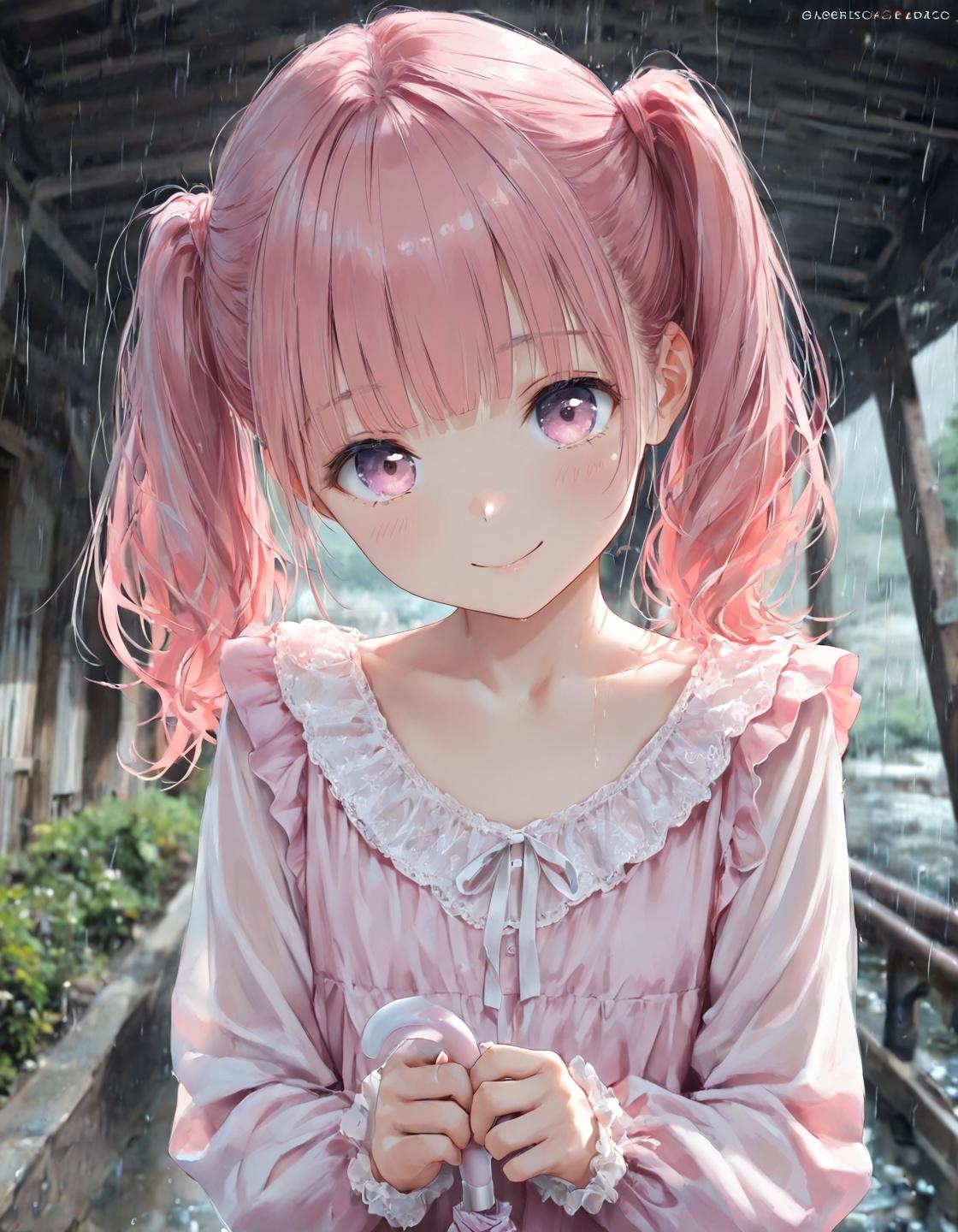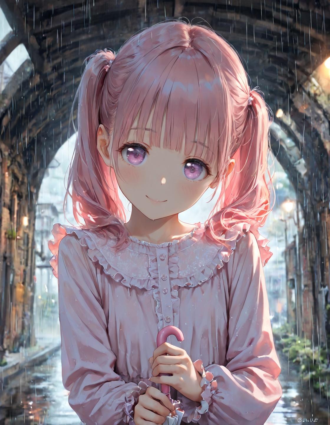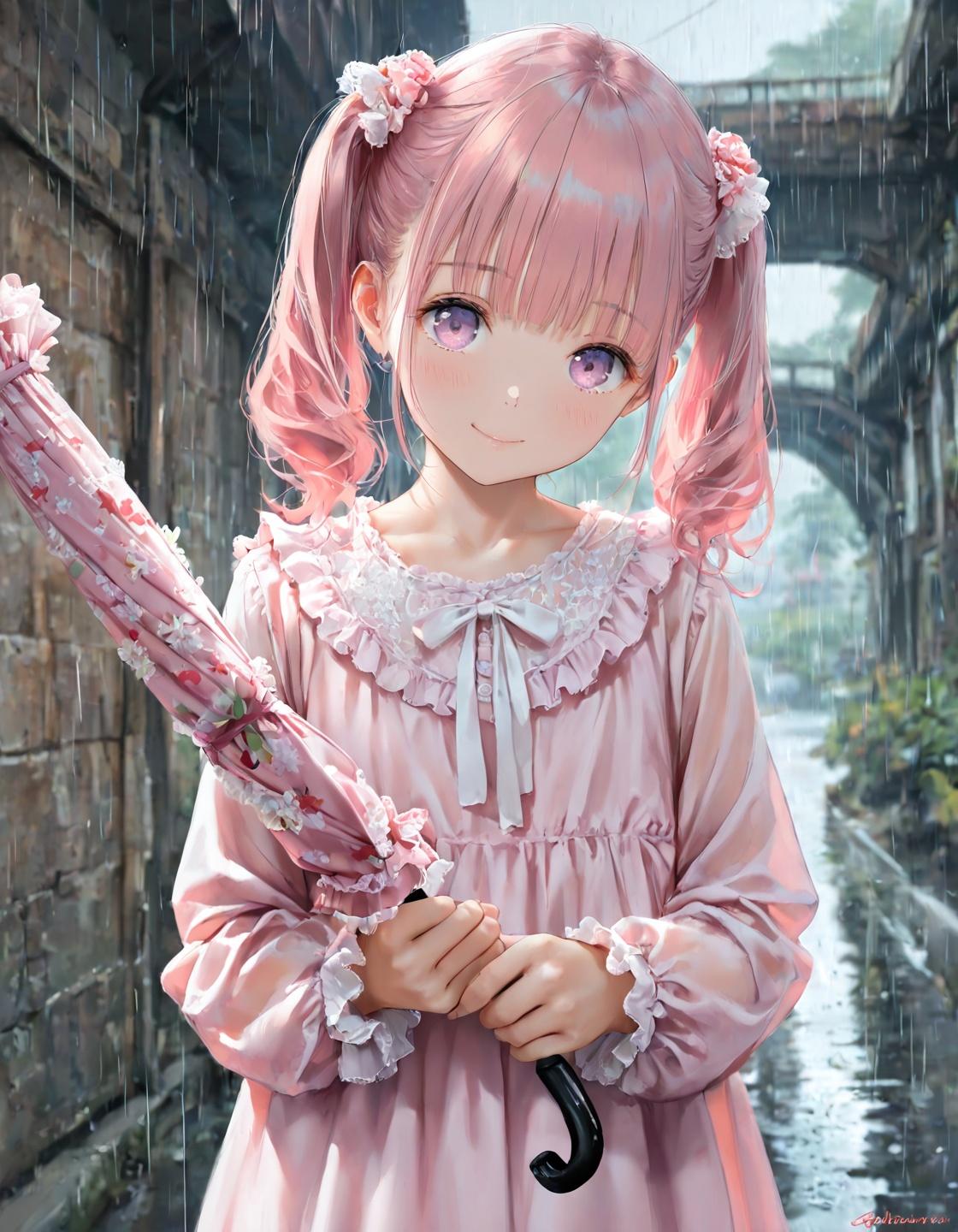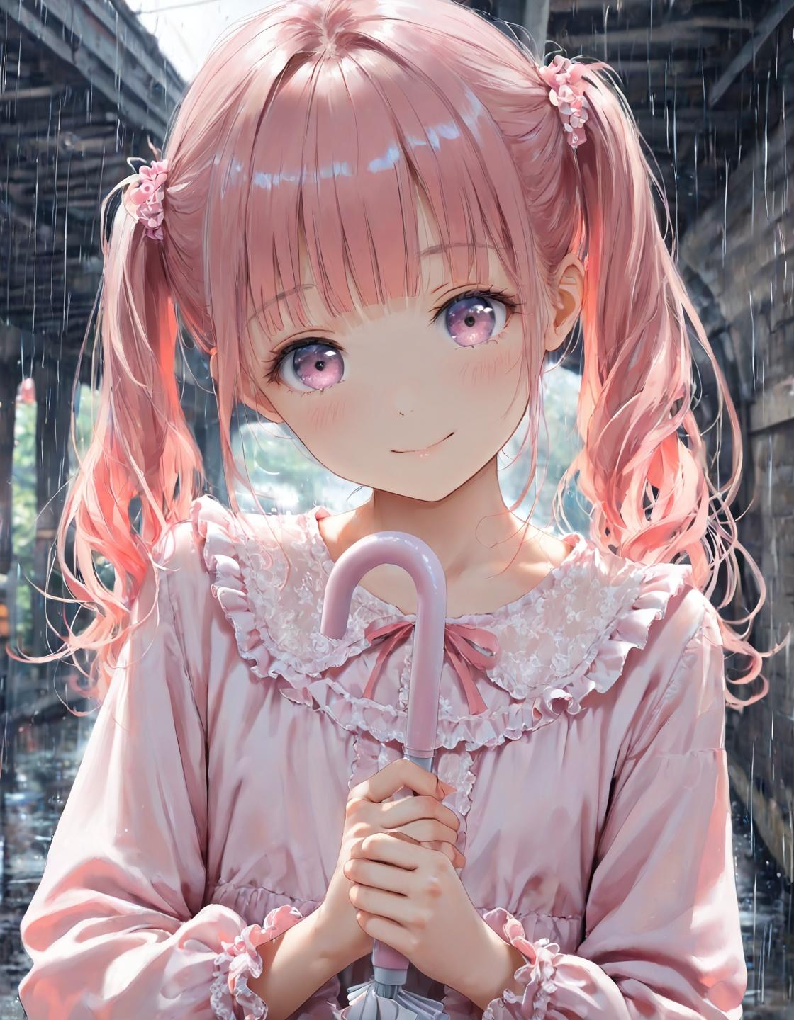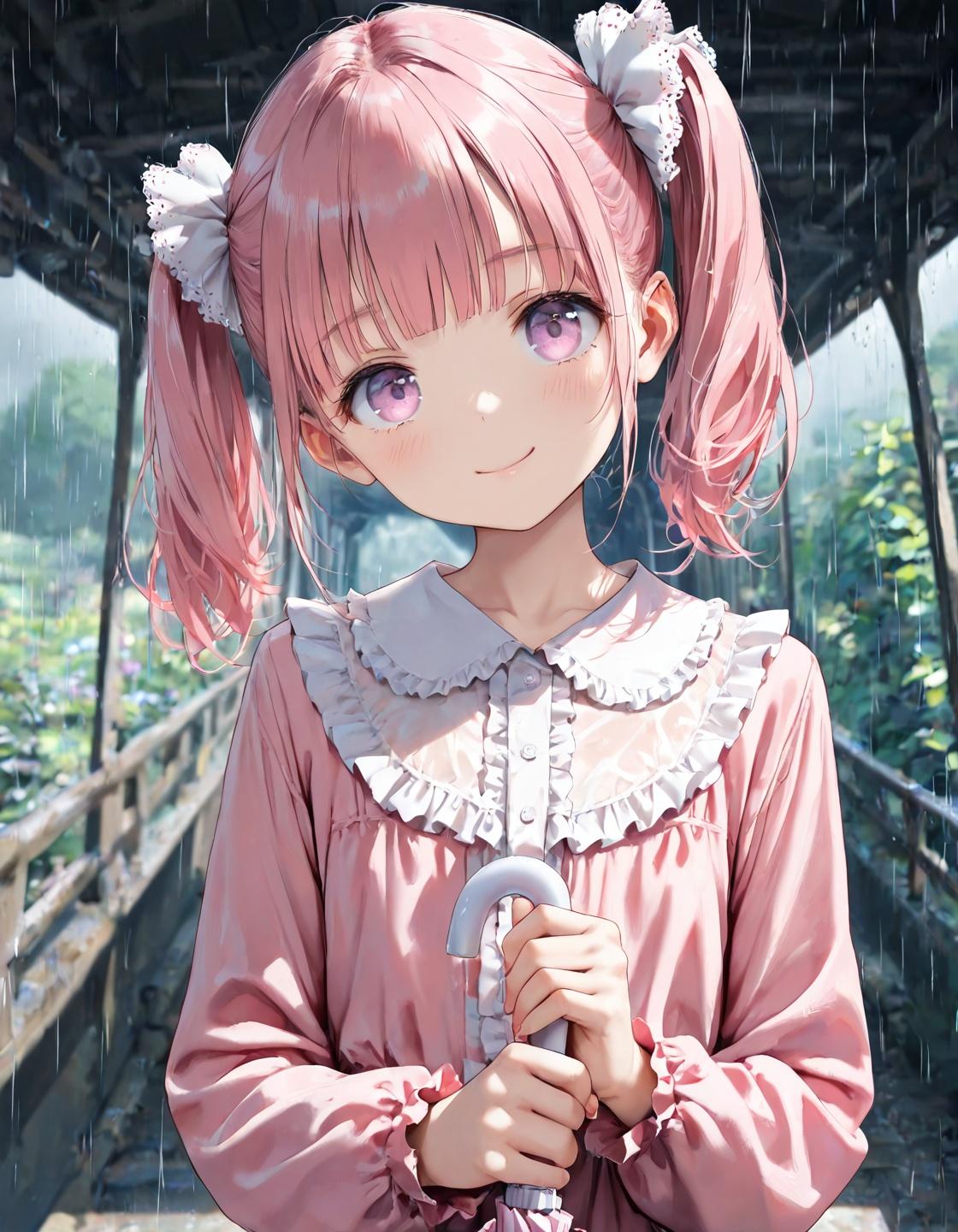 久しぶりの桜花ちゃん。一応屋根があるから傘を閉じているけれど、微妙に濡れている気も(^^;